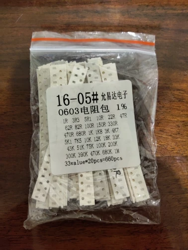 0603 SMD Resistor Kit Assorted Kit 1ohm-1M ohm 1% 33valuesX 20pcs=660pcs Sample Kit