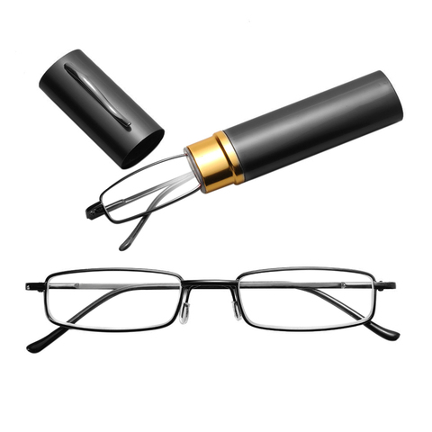+1.0~+4.0 Strength Unisex Metal Reading Glasses Stainless Steel Spring Hinge With Tube Case Frame Resin Vision Care Eyeglasses