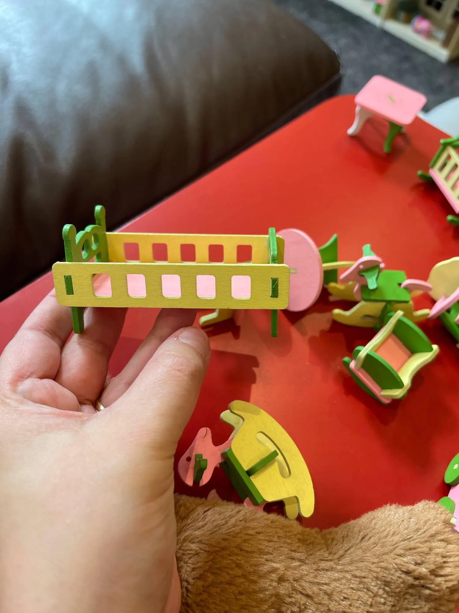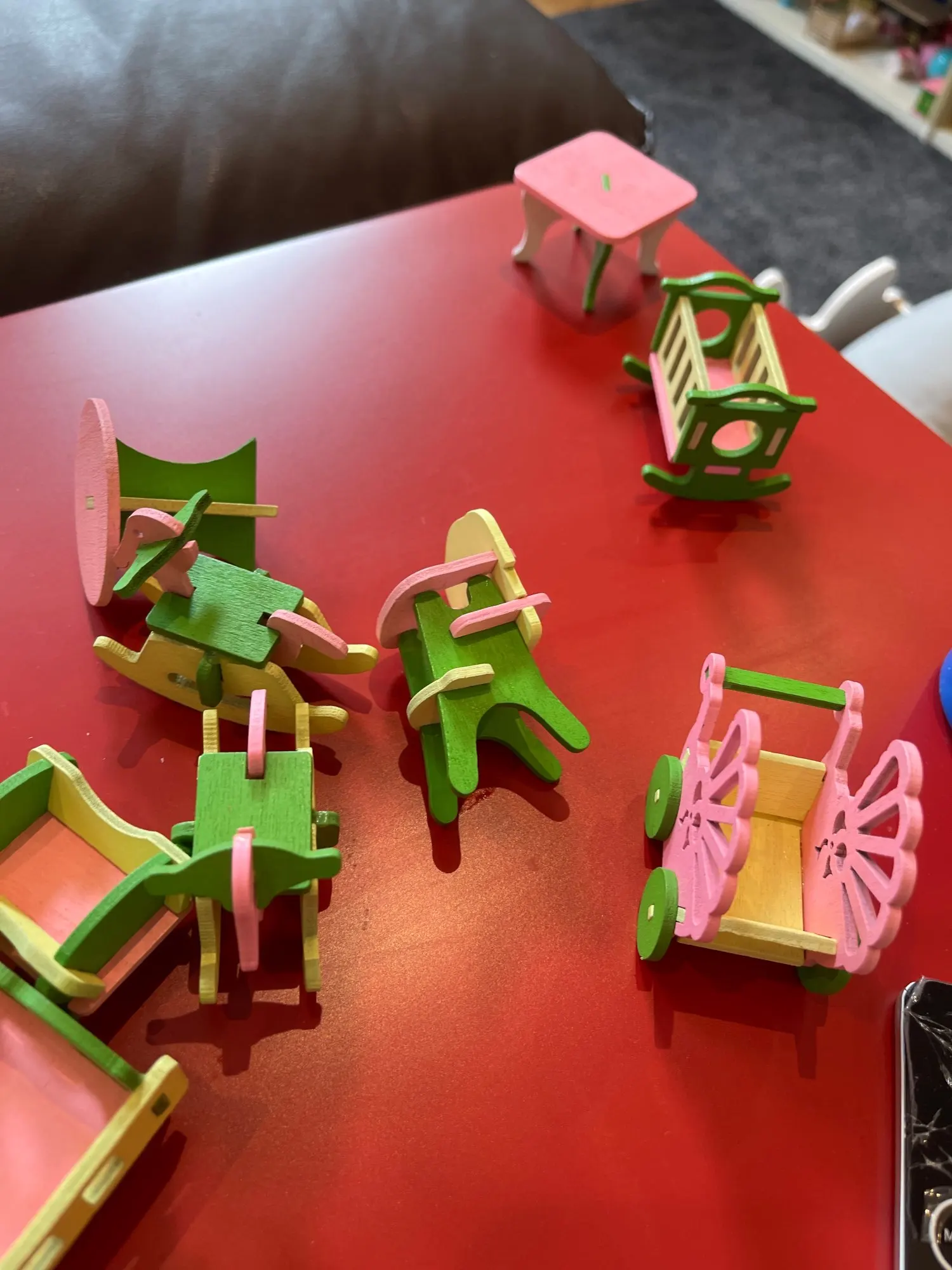 They use minimum glue to all this furniture, everything is dropped in pieces. Every thing very very small, it's too small also for smallest toy figurines.