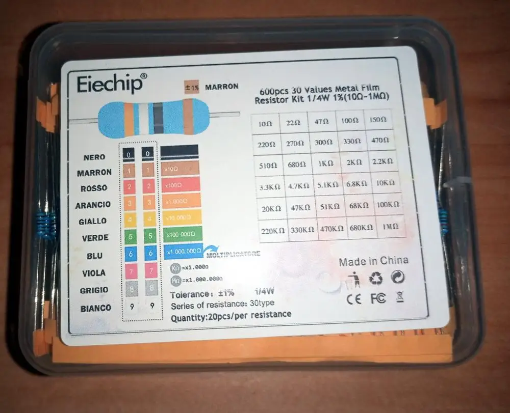 1/4W resistors 0.25W 1% 30 values Metal Film Resistor Kit 10R-1M DIY colored ring Resistor Pack
