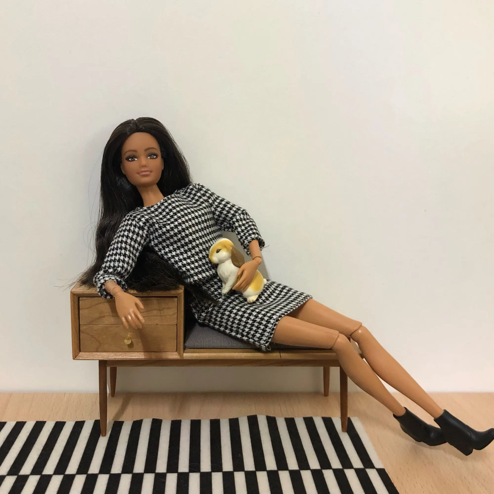 Item received not broken which is a good thing. But, it is a tad too small for the 12" Fashion Royalty dolls, out of scale, should be approximately 1/2" larger all round measurements. Cute item but out of scale for Barbie dolls. Too small.