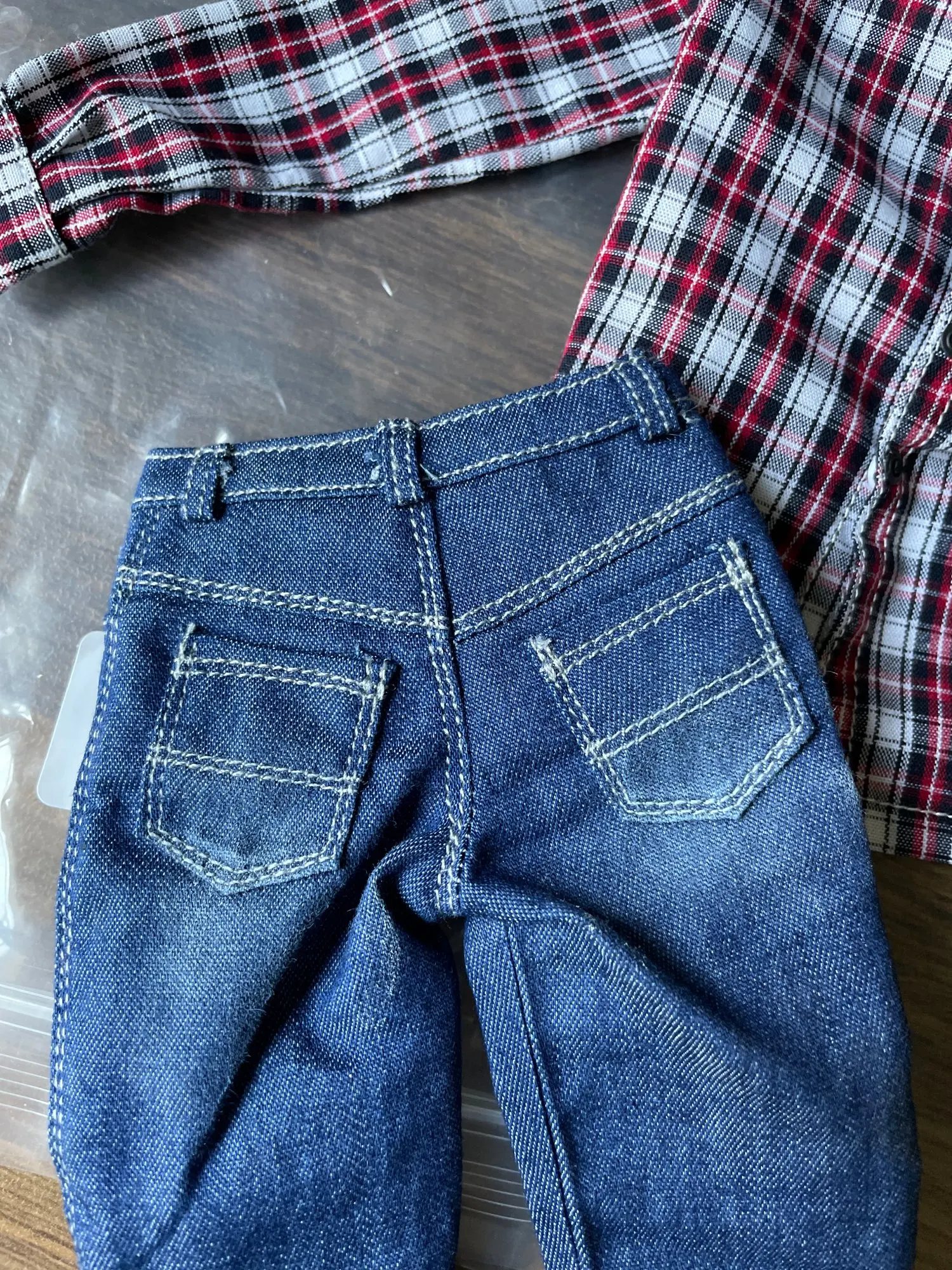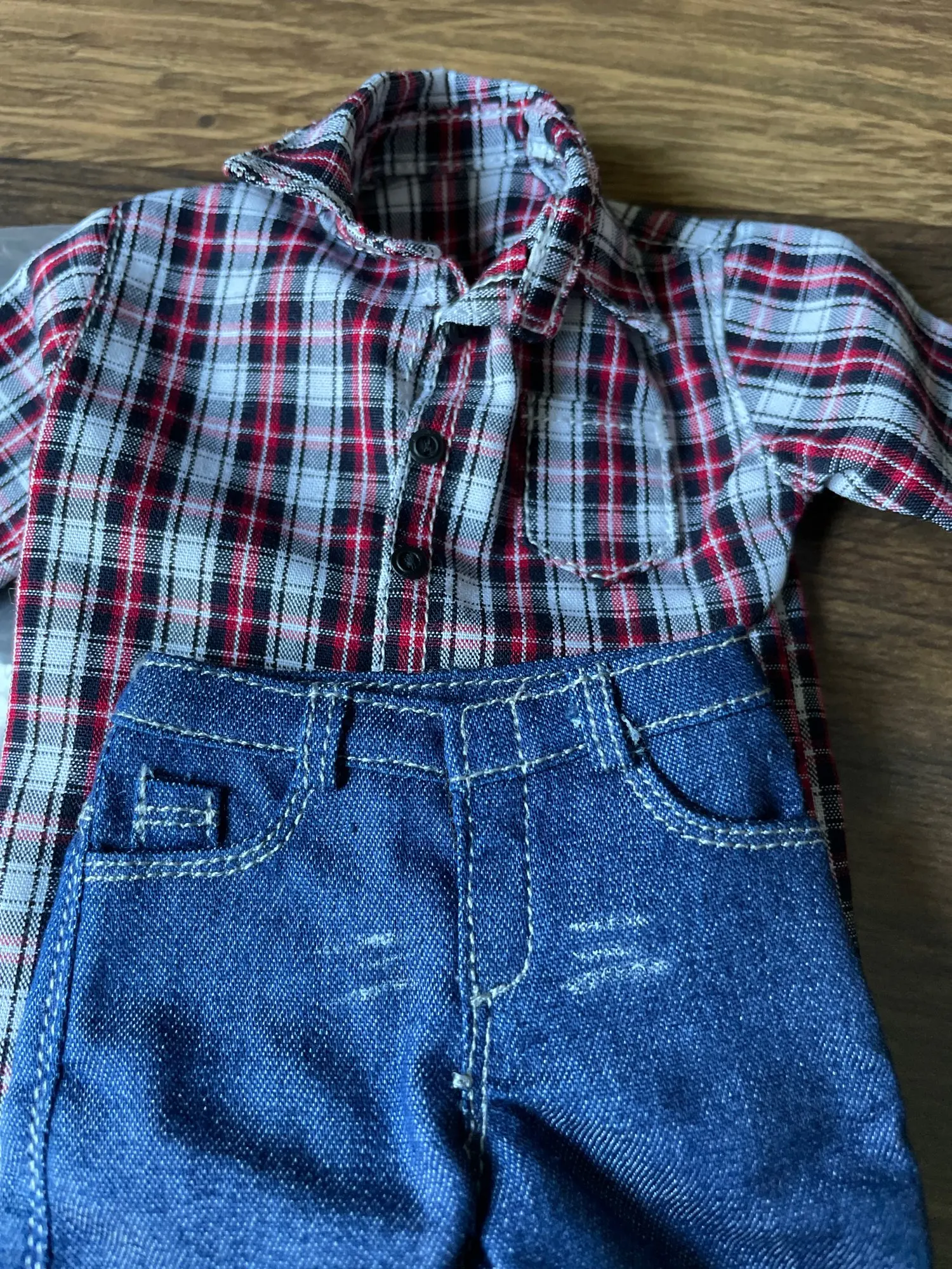 1/6 Scale Male Clothes for 12 inch Action Figure Red Plaid Long Sleeve Shirt Jeans Suit Dolls Casually Cool Outfits Clothing Set