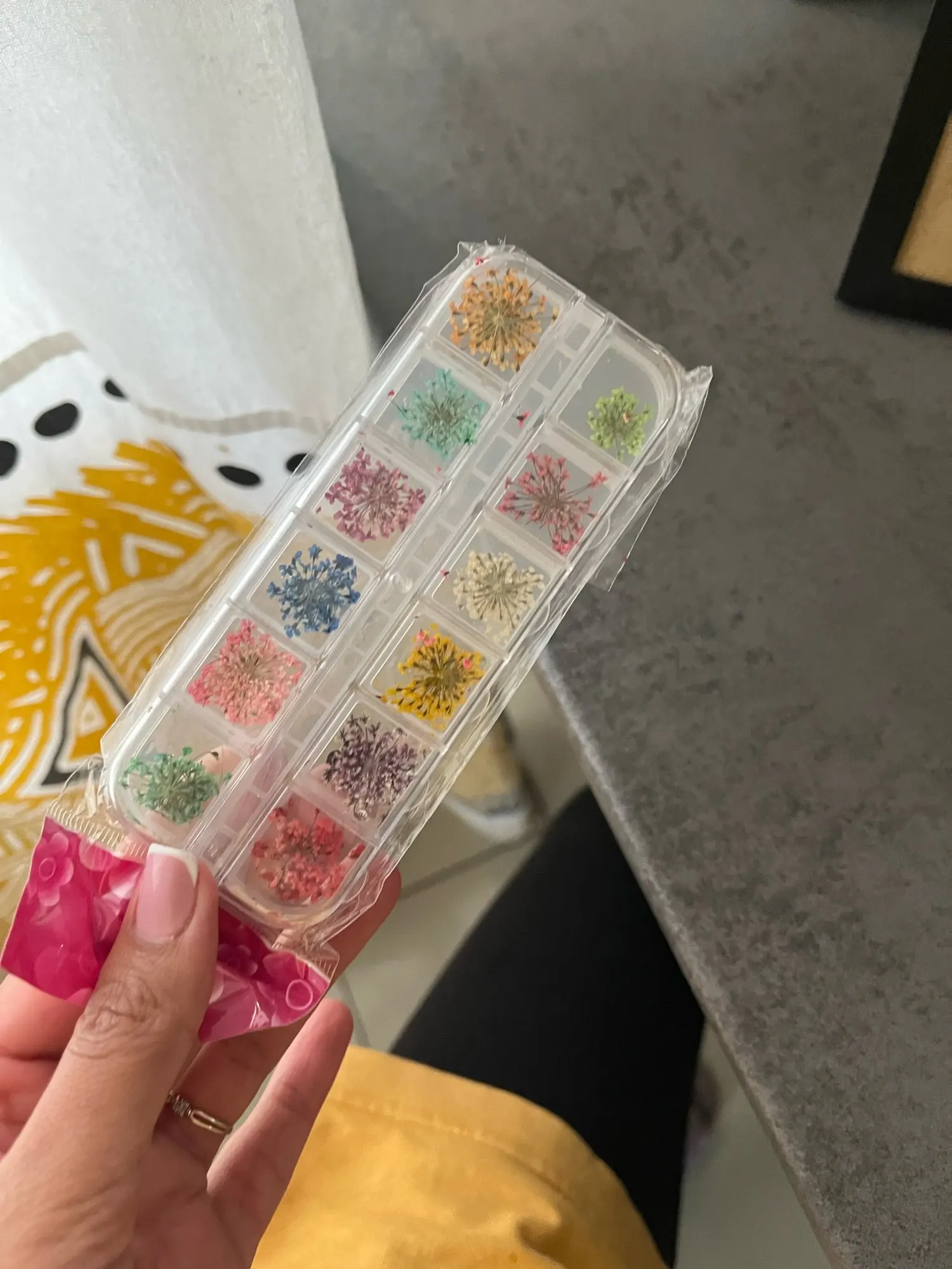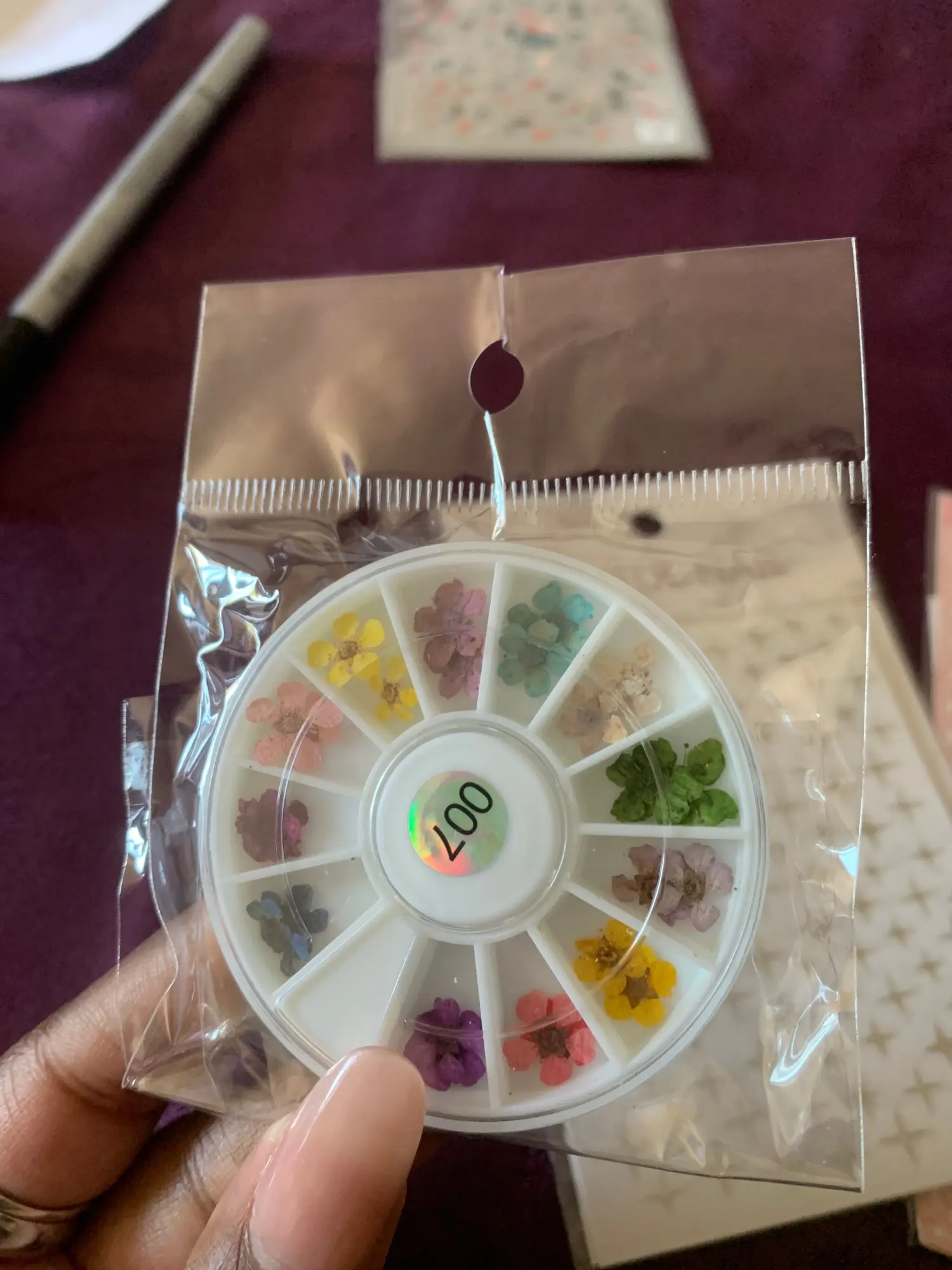 Very very small. I thought the would be a little bigger. Very difficult to work with because they break easily. Be careful. But despite that they look very pretty on the nails