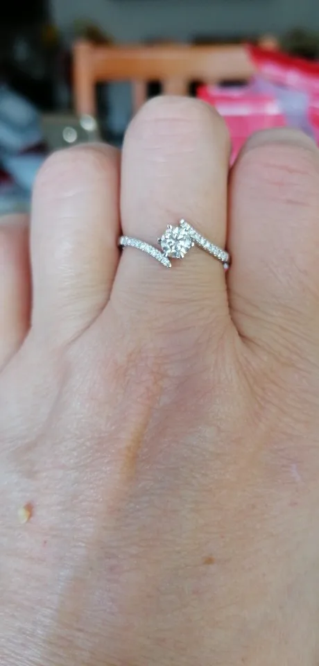 Absolutely stunning! Construction seems solid and the moissanite has crazy rainbow sparkles in the sun (pictures cannot do it justice). I ordered this late July 2nd and it arrived to Ontario, Canada on July 21st. I'd say that's pretty good timing especially during a pandemic. All-in-all, for the price you cannot go wrong. Many thanks!