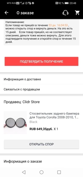 I don't recieved the item, order cancelled by seller.