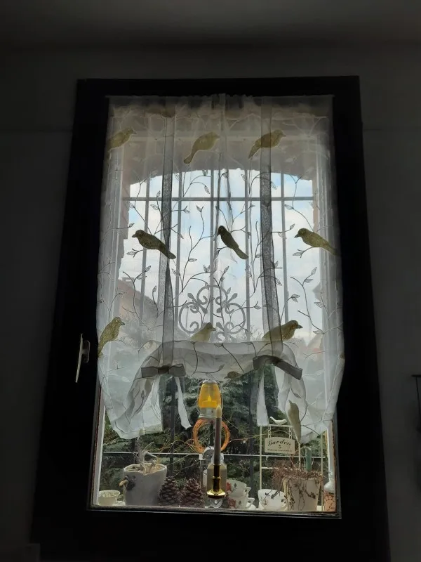 1 pcs Rod Pocket Roman Curtain for Kitchen Door Corridor Birds Embroidered White Tulle Small Bay Window Lifting Curtain WP004D3