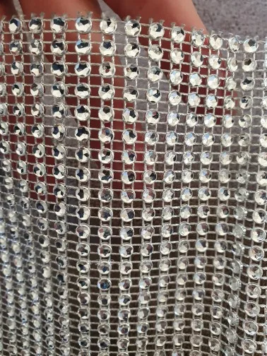1 yard Gold Siver Mesh Trim Bling Diamond Wrap Roll Tulle Crystal Ribbons Sewing craft Party Wedding Decoration 7LS40