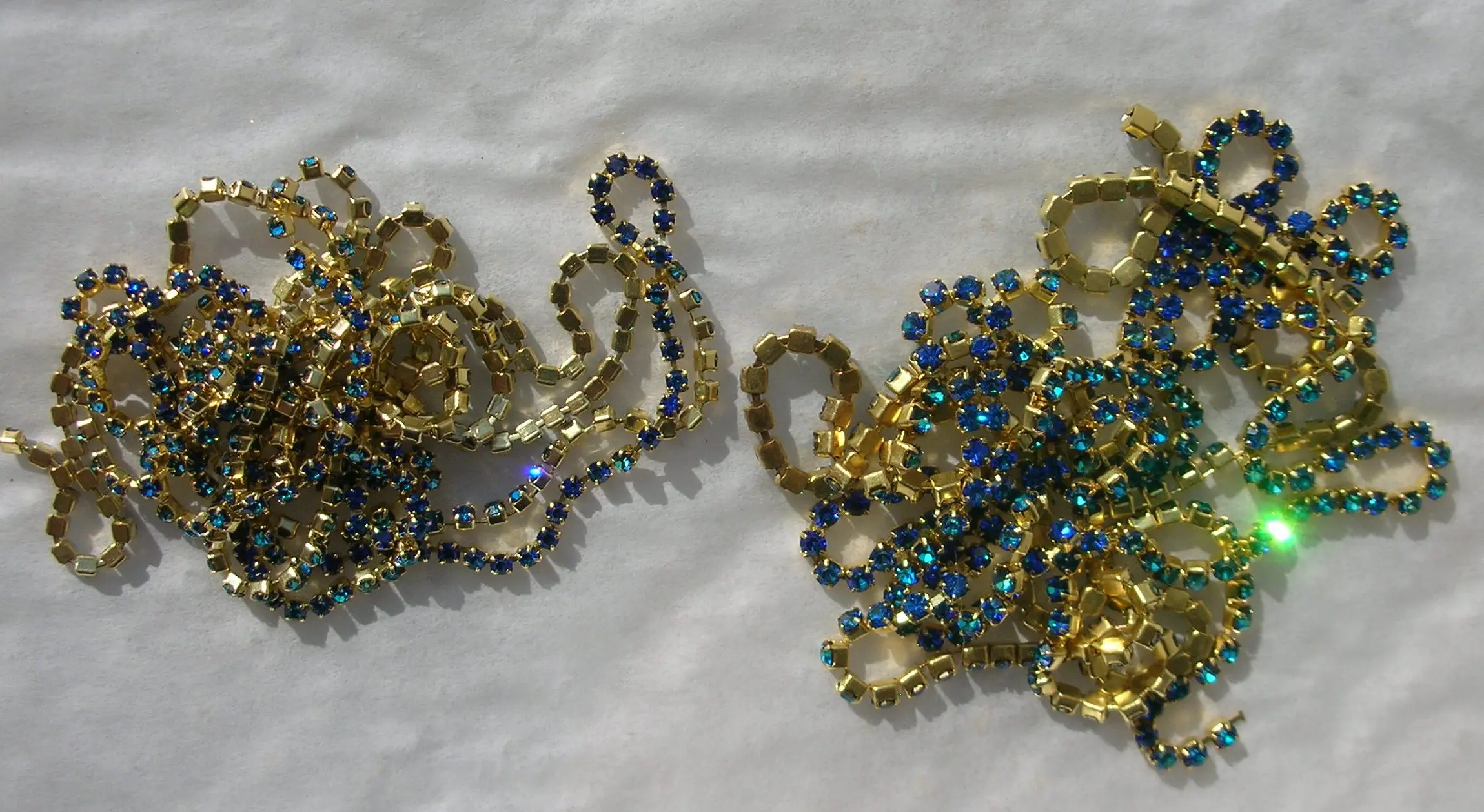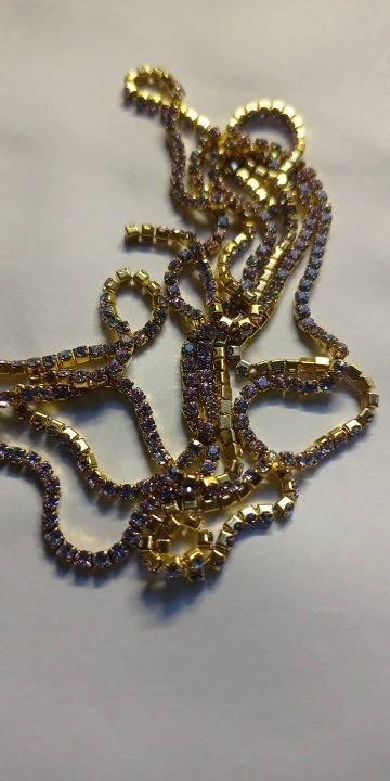 Beautiful pieces! looks like swarovsky 'deLite' crystal series. The 2 downsides of these crystal chains are the fact that it only comes in 'gold' base (i'd much prefer one in silver), and that spaces between crystals are quite large - in some sizes larger than crystals themselver. But the latter is quite fine for embroidery purposes