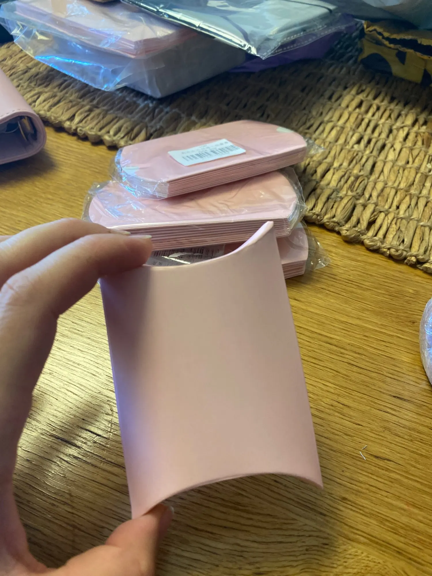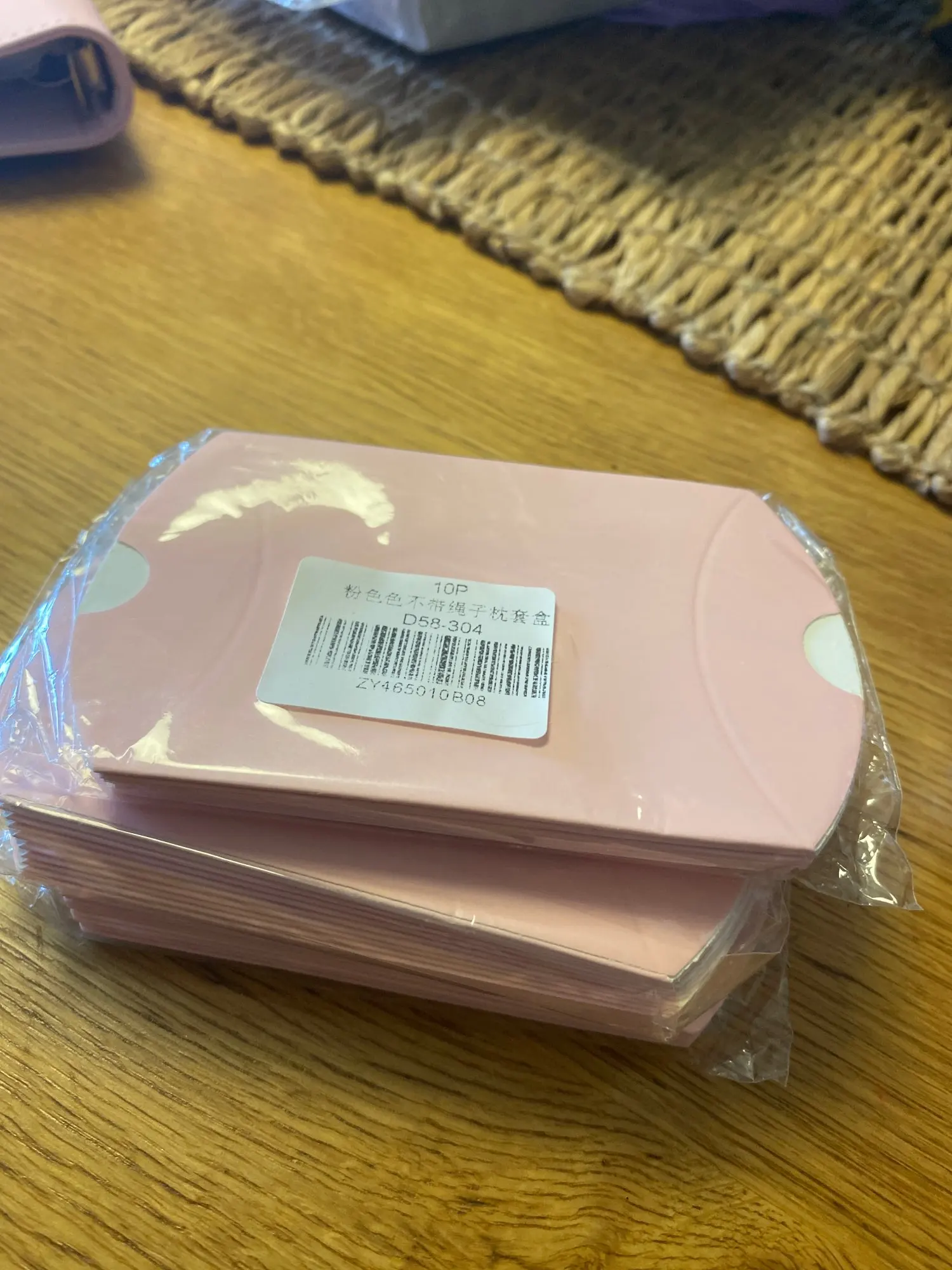 The boxes aren't pink, it's very pale...you see in the picture that one of the them is spotted with something. arrived in Romania quick, less than a month.