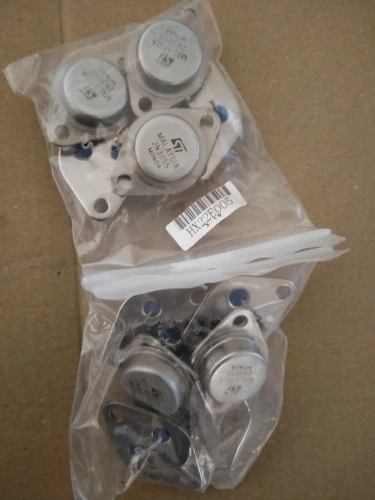 Dear Seller, super fast delivery to Austria, the 2N3055 are as described by ST, the hfe parameter is between 7x78 and 1x110 and 2x126, you can make good pairs.