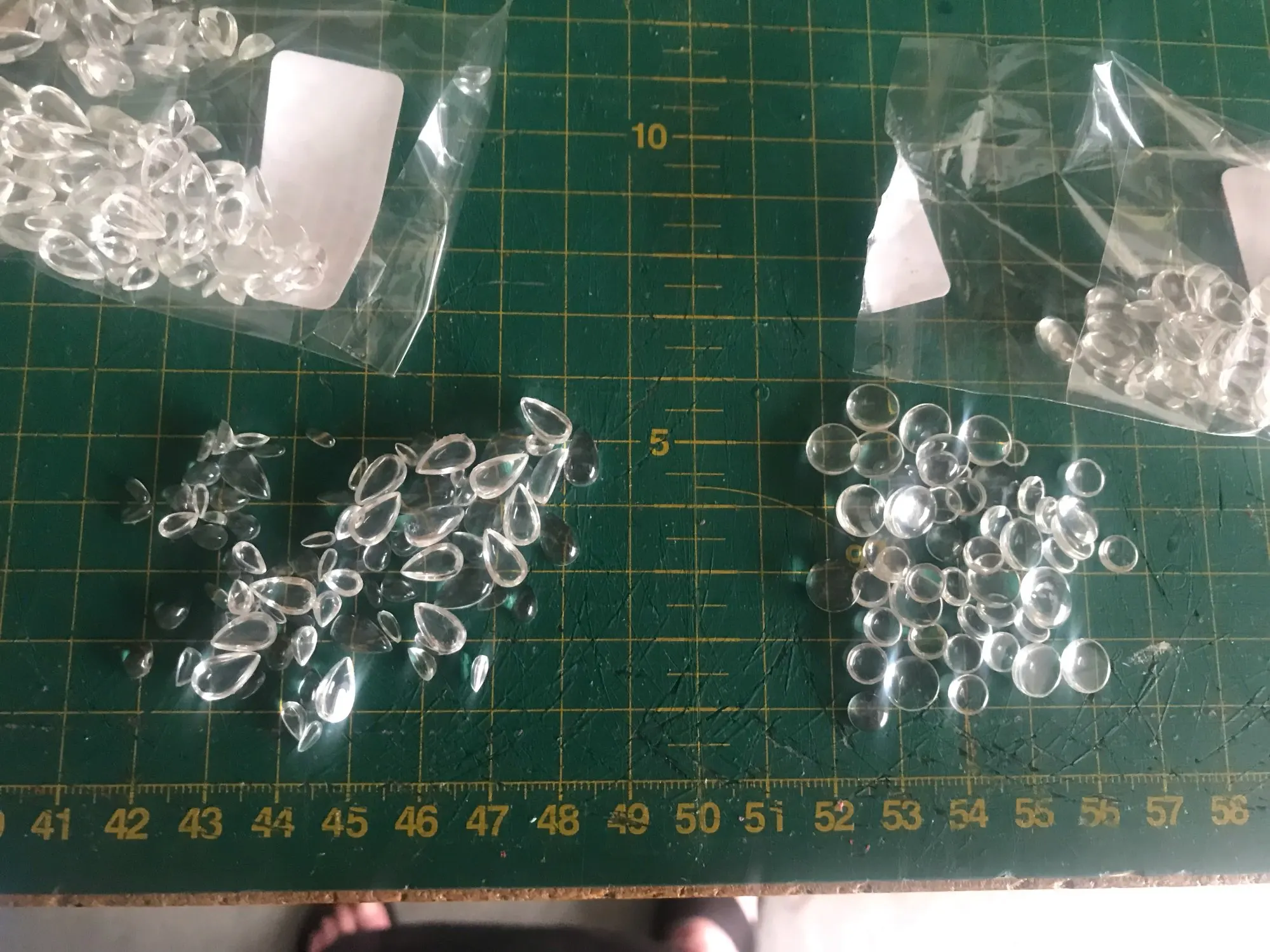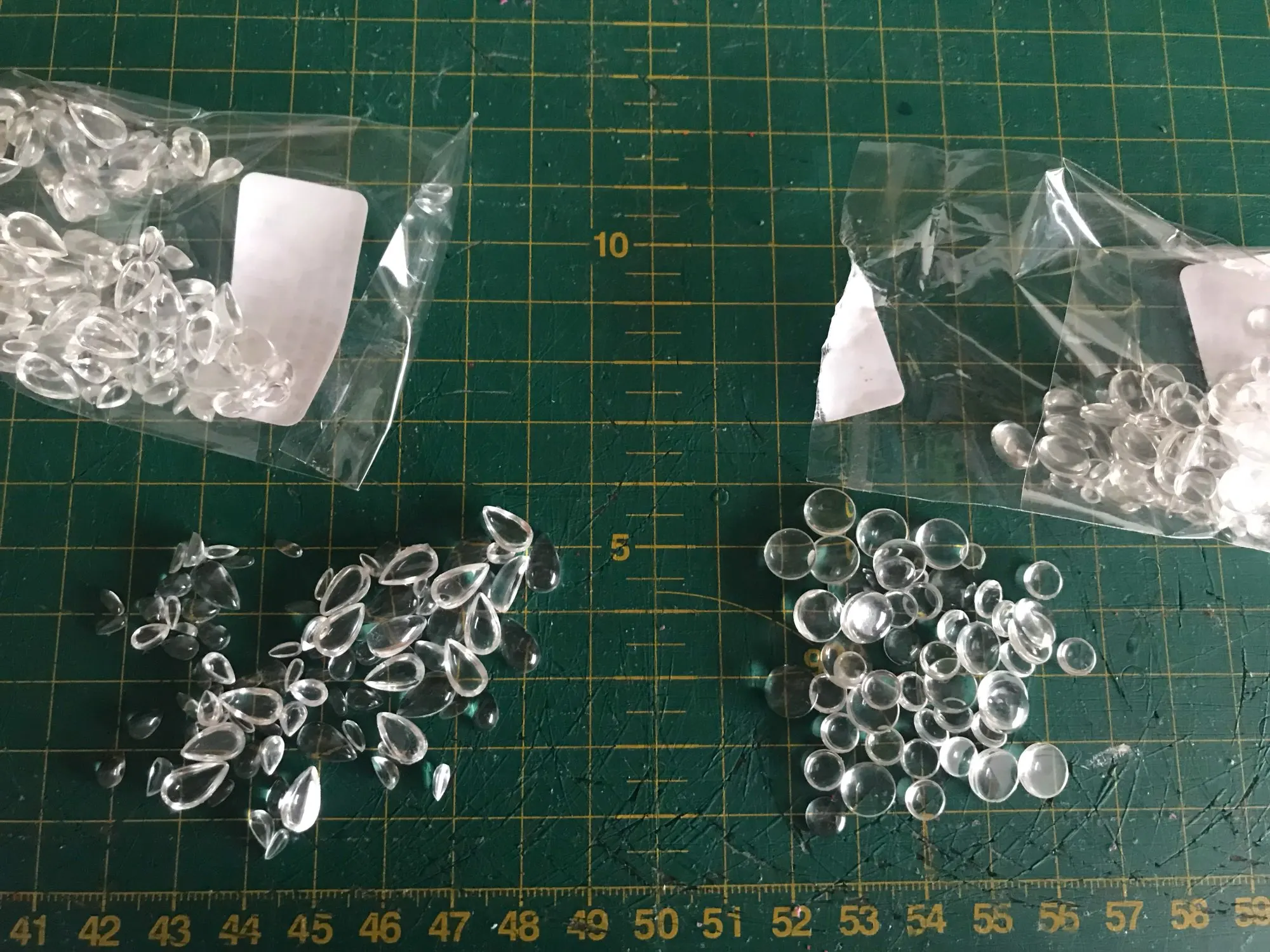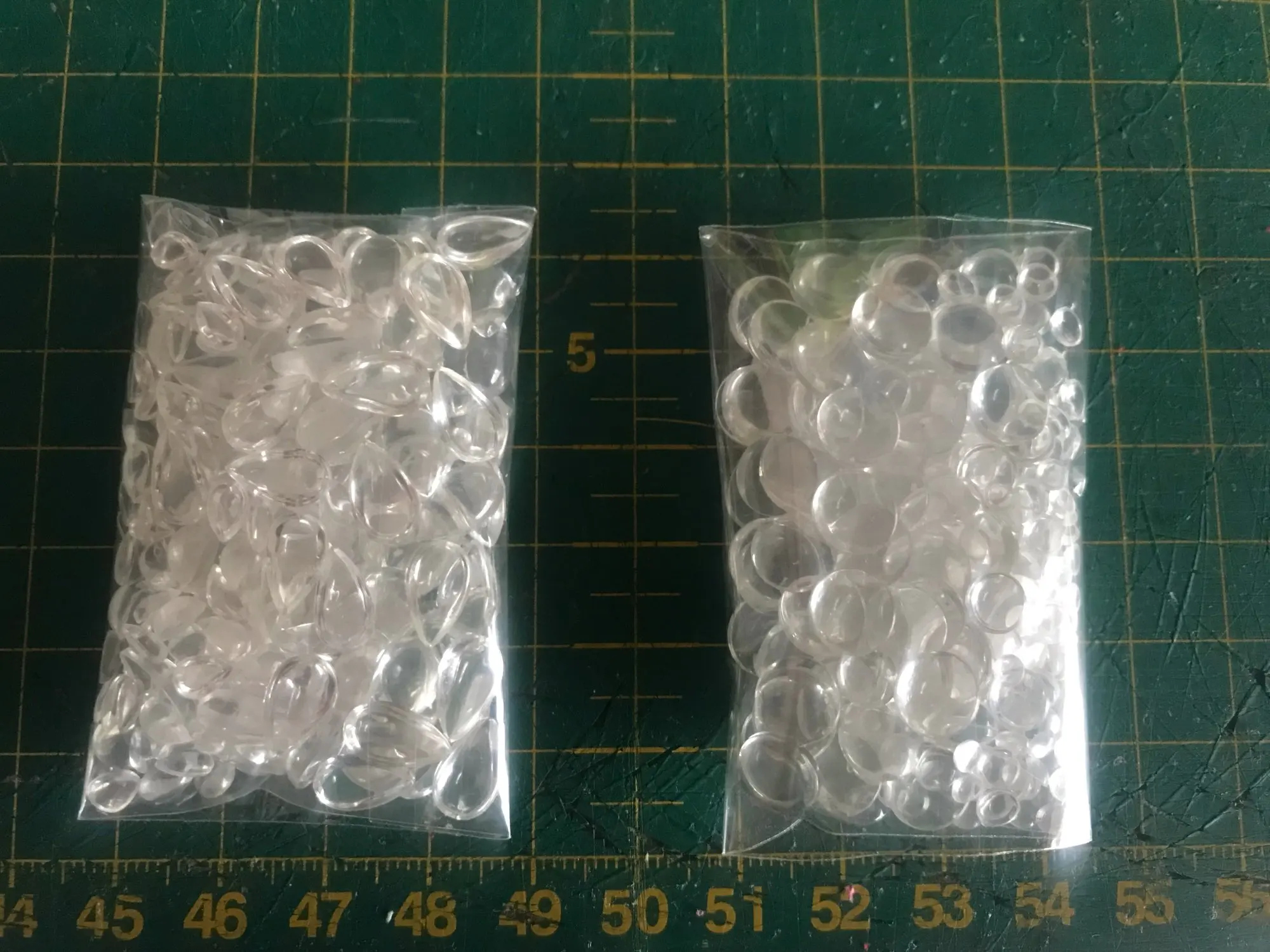 Great clear half pearls, plenty more in the package. I ordered a mixed bag of 200 and got at least 250.