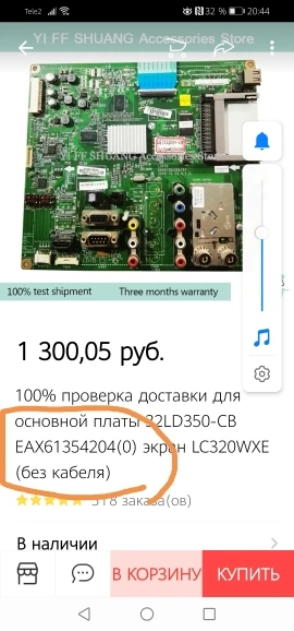 100% test shipping for 32LD350-CB main board EAX61354204(0) screen LC320WXE(no include cable)
