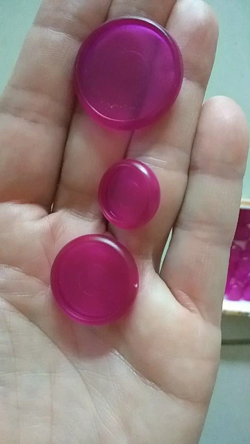 Purple colour is semi-translucent but still very pretty. I received 30x 18mm, 30x 24mm and 40x 28mm discs. No 32mm and 38mm discs. Overall pretty happy with them.