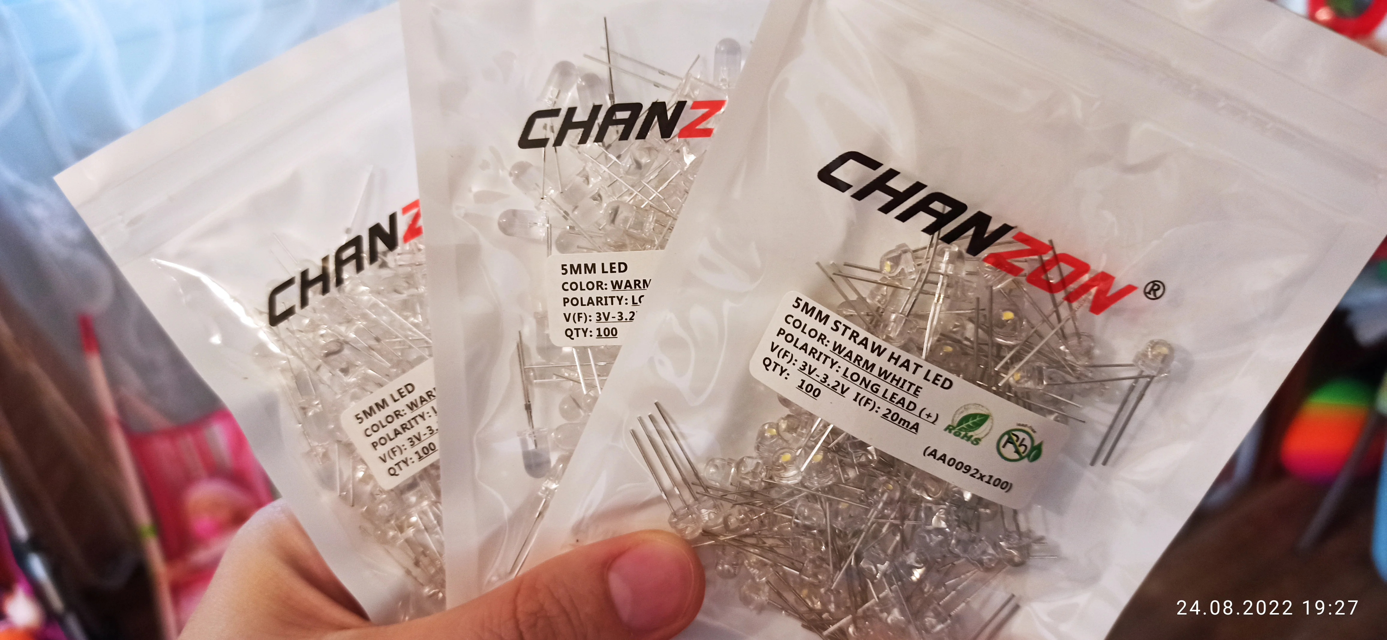 Fast delivery, quality components with good marking and correct quantity. I took those to change RGB flashing leds that are used in almost all decorative goods around. I like colours of it and the way they change