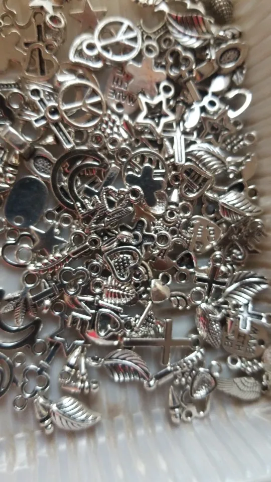 100pcs/lot Random Mixed Tibtan Silver Beads Charms Pendants for DIY Jewelry Making Accessories Christmas Gift Shipping Randomly