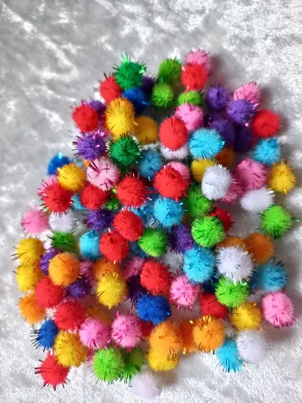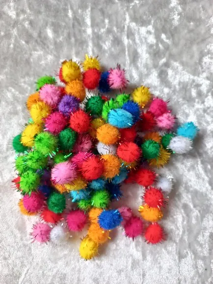 100Pcs/lot Sequins Pompom Ball Fur Ball Plush Mixed Color Creative Kids Handmade Material Glitter Foam Ball DIY Craft Supplies