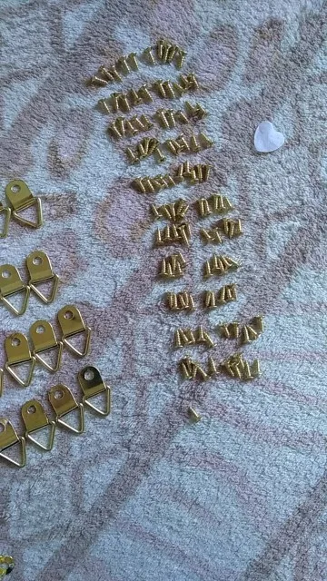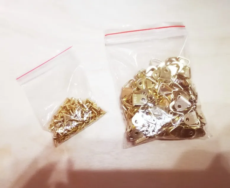 100pcs/Set Universal Strong Golden D Rings Decor Picture Frames Hanger Hooks Hanging Triangle With 100pcs Screws Helper