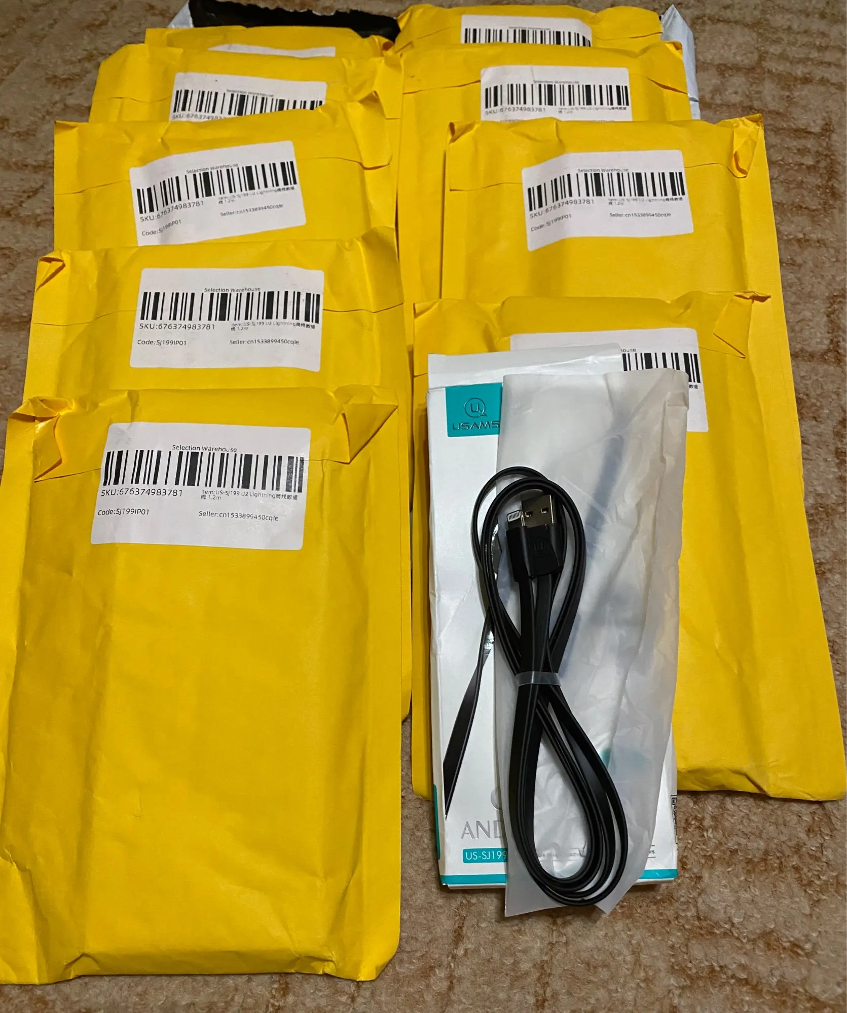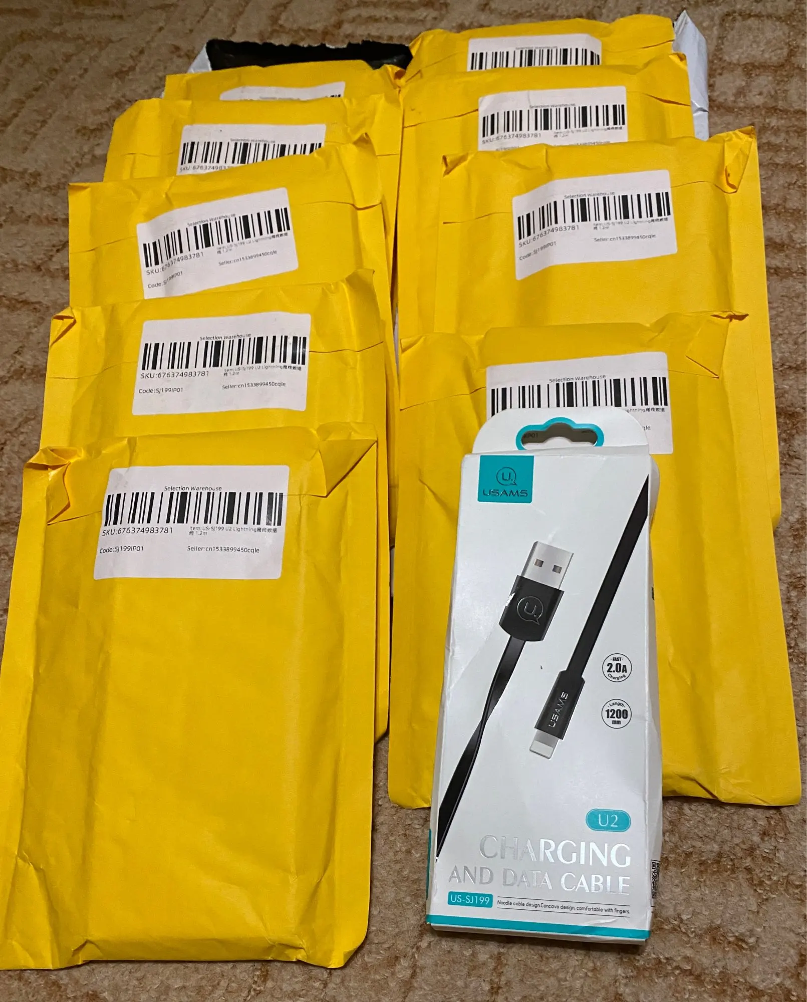 10pcs/a lot Usb Cable For iPhone 7,USAMS 2A Fast Charger Cable for iPhone X 8 7 6 USB Date Cable Light usb cable data sync