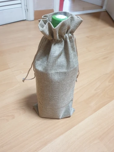 10pcs Jute Wine Bags, 14 x 6 1/4 inches Hessian Wine Bottle Gift Bags with Drawstring
