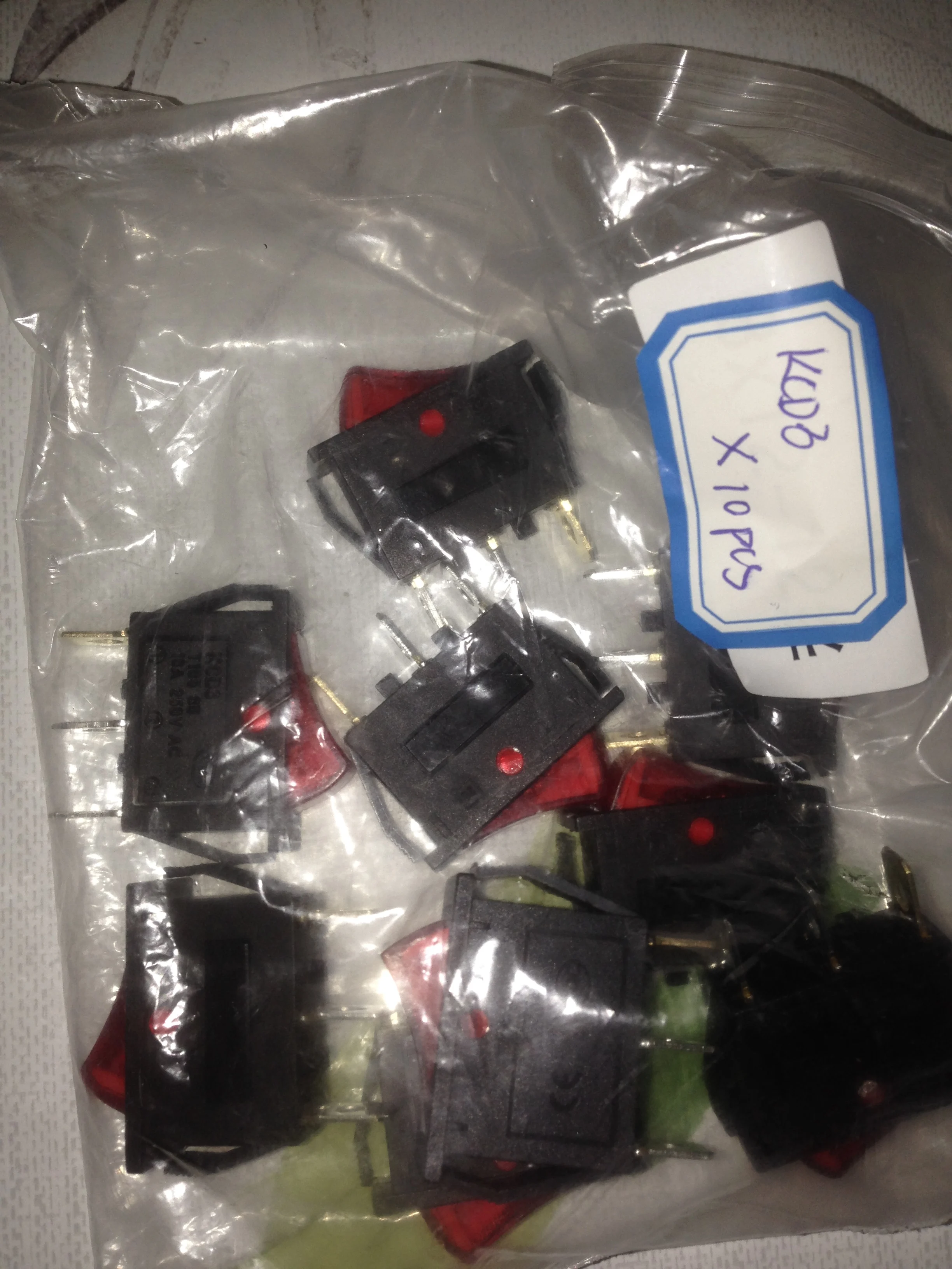 10PCS KCD3 ultrathin rocker switch with red light 2 throw 15A 250V 800W I/O power switches for electric cokers Free shipping D.