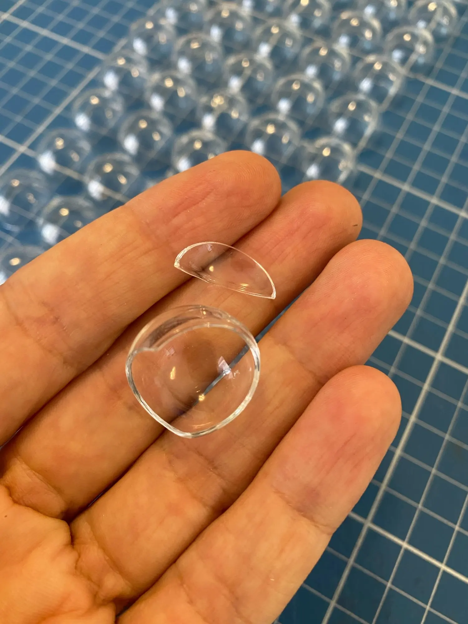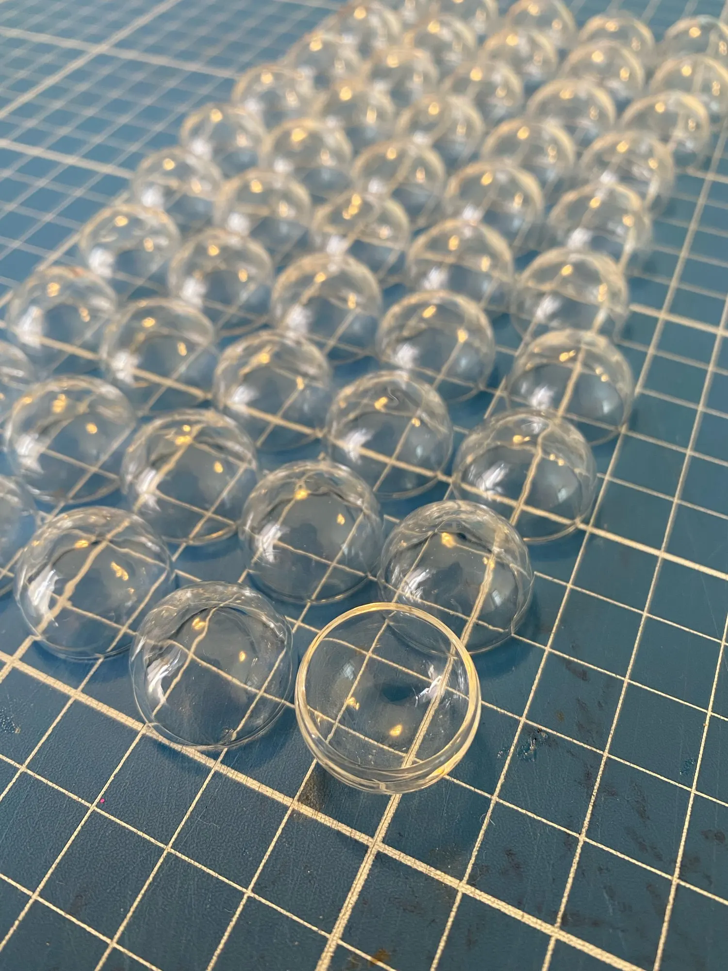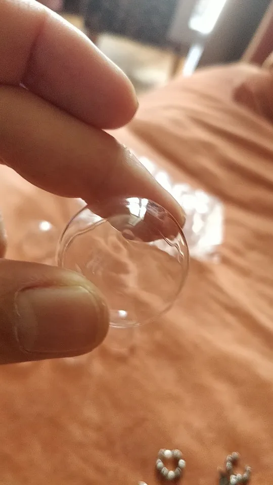 Exact true 15mm size. Some sellers I've bought these from have a "pooling" of glass in the bottom, it makes it flat at the top in the inside, while the outside is still round. They look terrible when they are defective like that. I found very very few of them in my batch. I'll take it!
