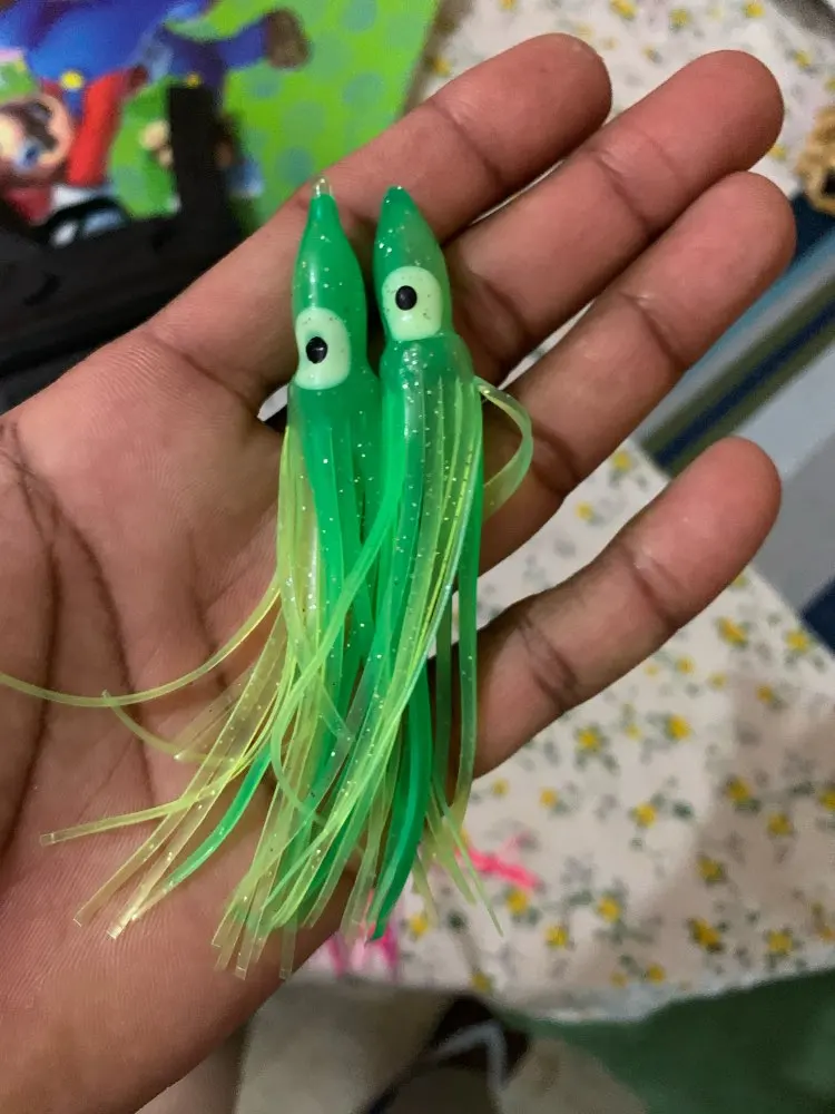 I'm not particularly happy with these lures. I placed this order because I wanted orange and blue hoochies. I don't know what to do with the clear ones and I didn't need any more glow ones. I can use the gold and pink ones. The quality is good other than the colors and the shipping was faster than on most other items I ordered on Ali Express.