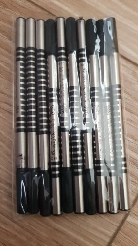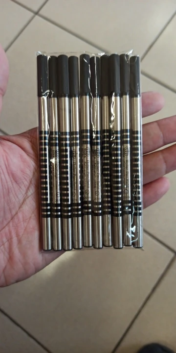 Quick arrival. Packaged arrived safely in bubble wrap. Minimal ink leakage spotted but still writes fine. Ink and roller pen tip is very similar to Lamy M63. Refill slightly shorter than M63 but still fits my Lamy Safari rollerball pen.