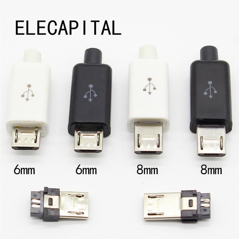 10pcs Micro USB 5PIN Welding Type Male Plug Connectors Charger 5P USB Tail Charging Socket 4 in 1 White Black