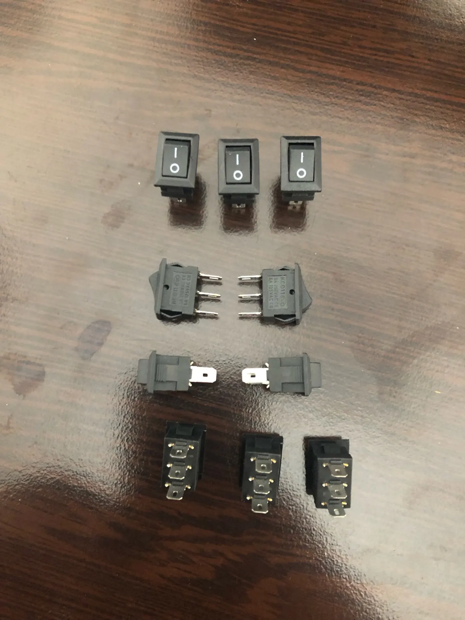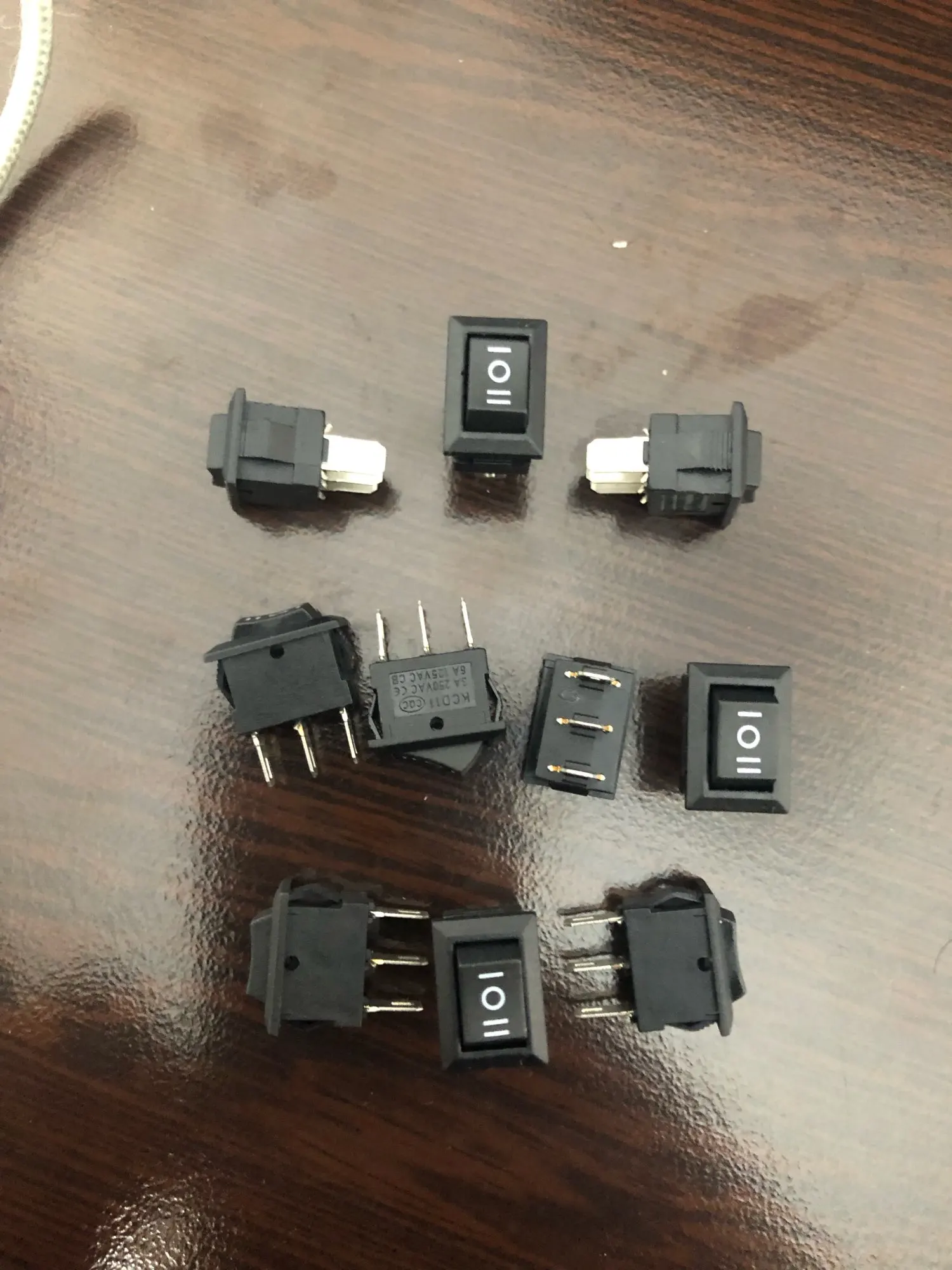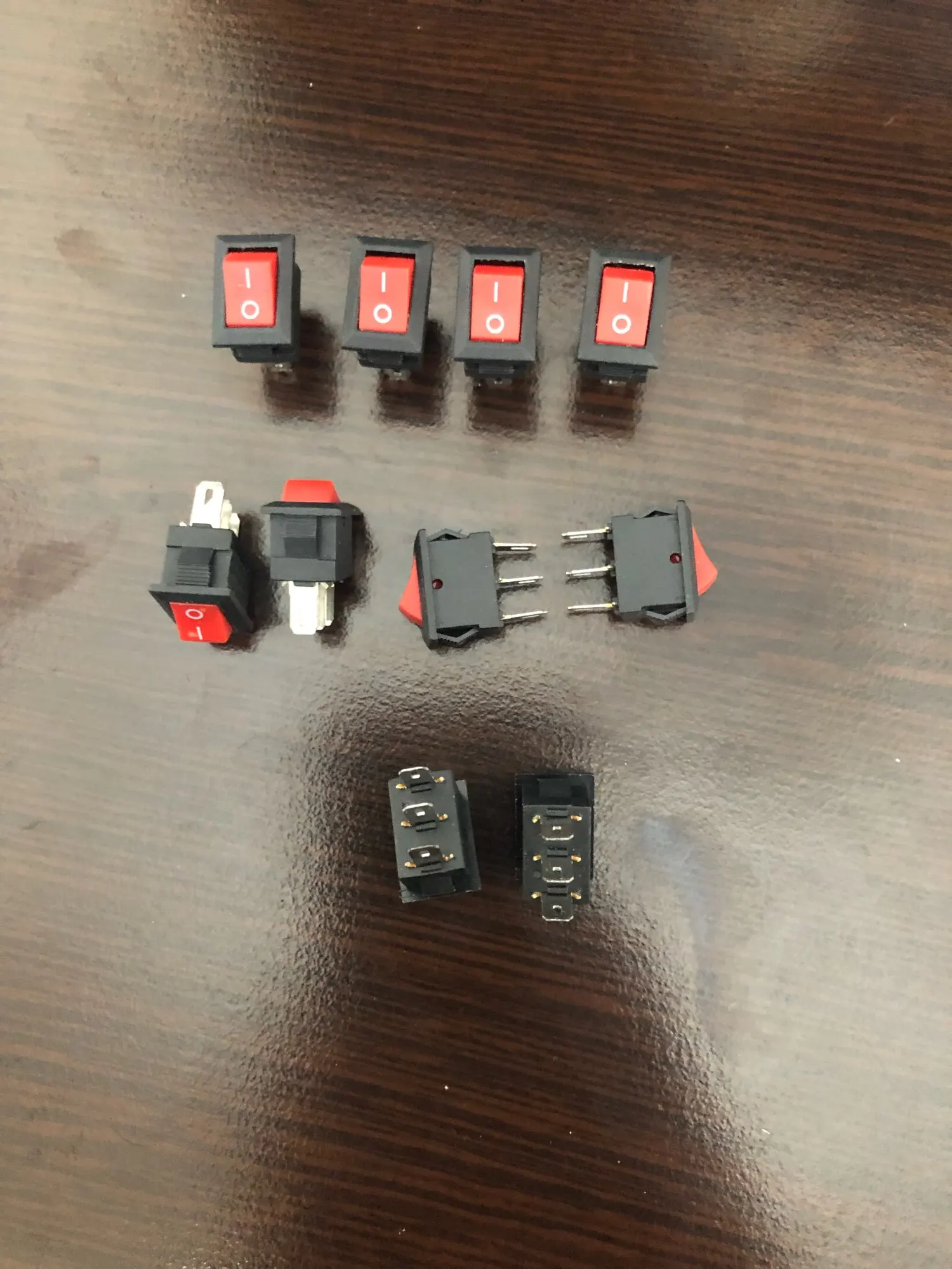 10pcs Mini Rocker Switch SPST Black and Red Snap in Switches Button AC 250V 3A / 125V 6A 2/3Pin I/O 10*15mm On-off Switch Rocker