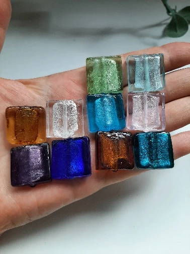 10Pieces /lot 20mm Lampwork glass beads Square Flat Foiled Multi-Color for jewelry &DIY Craft