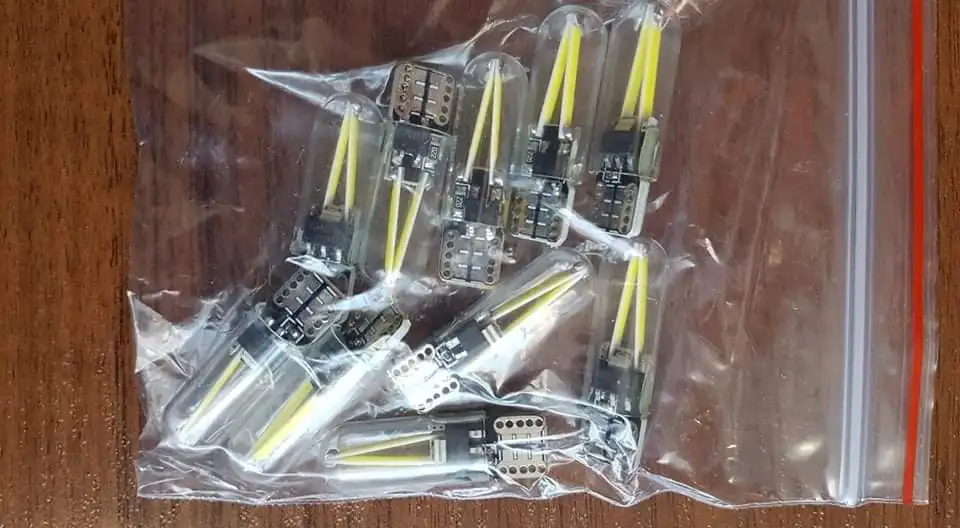 10X Glass Shell Socket T10 W5W 194 Filament COB Car LED Light Bulb Blue Yellow For Car Door Trunk License Plate Lamp 12V Canbus
