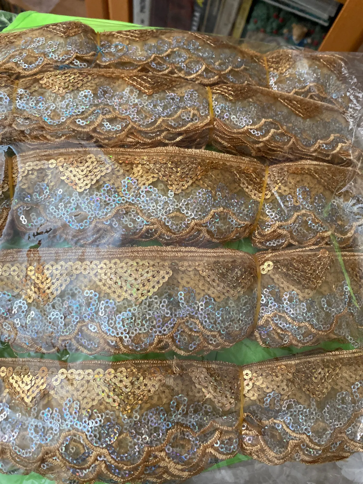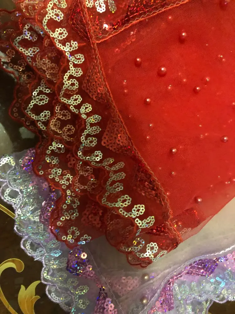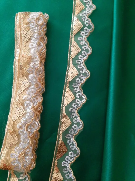 10Yard Sequin African Lace Paillettes Organza Fabric Material Ribbon Braid Trim Sew Dance Clothes Curtain Accessory Gold Silver