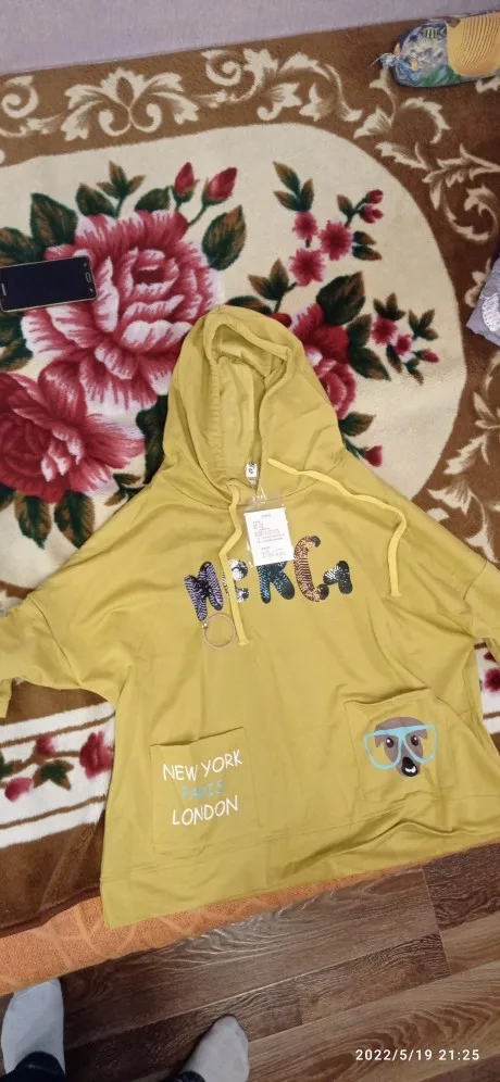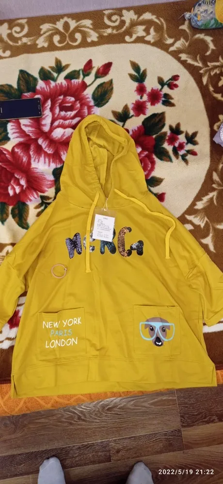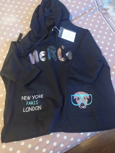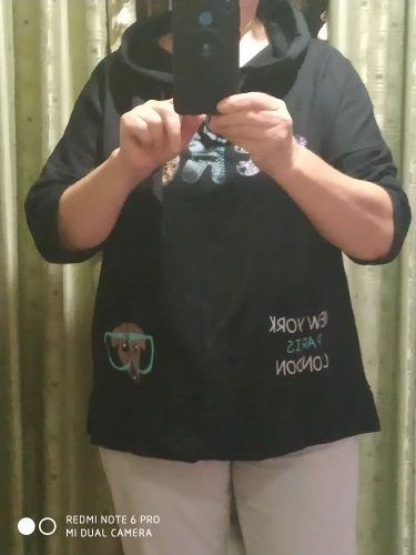 110kg Women Spring Summer Fashion Korea Style V-neck Cartoon Print Hooded Sweatshirt Office Lady Student Sweet Loose Casual Top