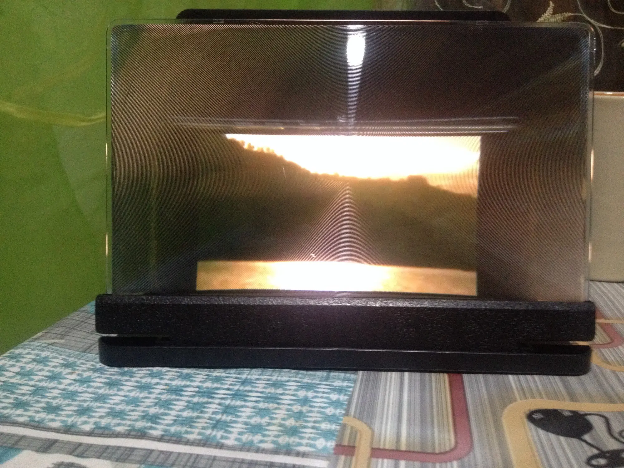 The box was broken. If you don't make a slight angle, you won't be able to focus from your line of sight.