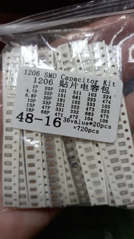 1206 SMD Capacitor assorted kit ,36values*20pcs=720pcs 1pF~10uF Samples Kit electronic diy kit Free shipping