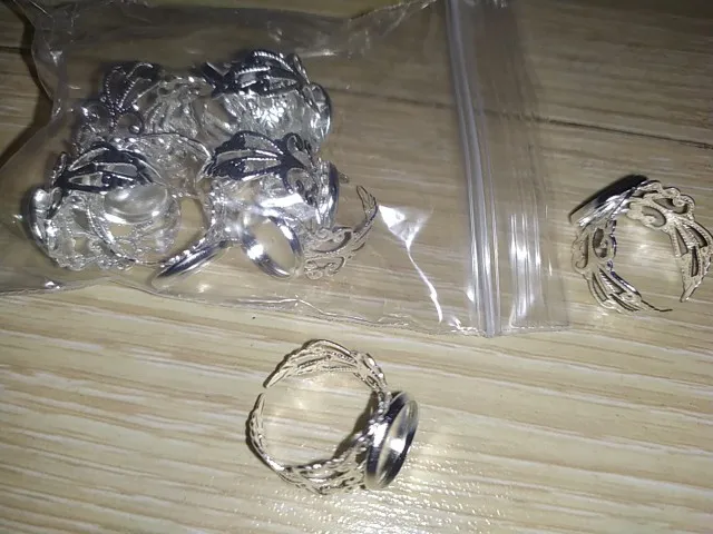 12mm 10pcs Silver Plated Brass Adjustable Ring Settings Blank/Base,Fit 12mm Glass Cabochons,Buttons;Ring Bezels J2-20