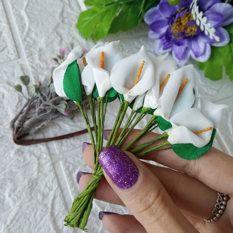 12pcs Mini Foam Calla Handmake Artificial Flower Bouquet Wedding Decoration DIY Wreath Gift Box Scrapbooking Craft Fake Flower