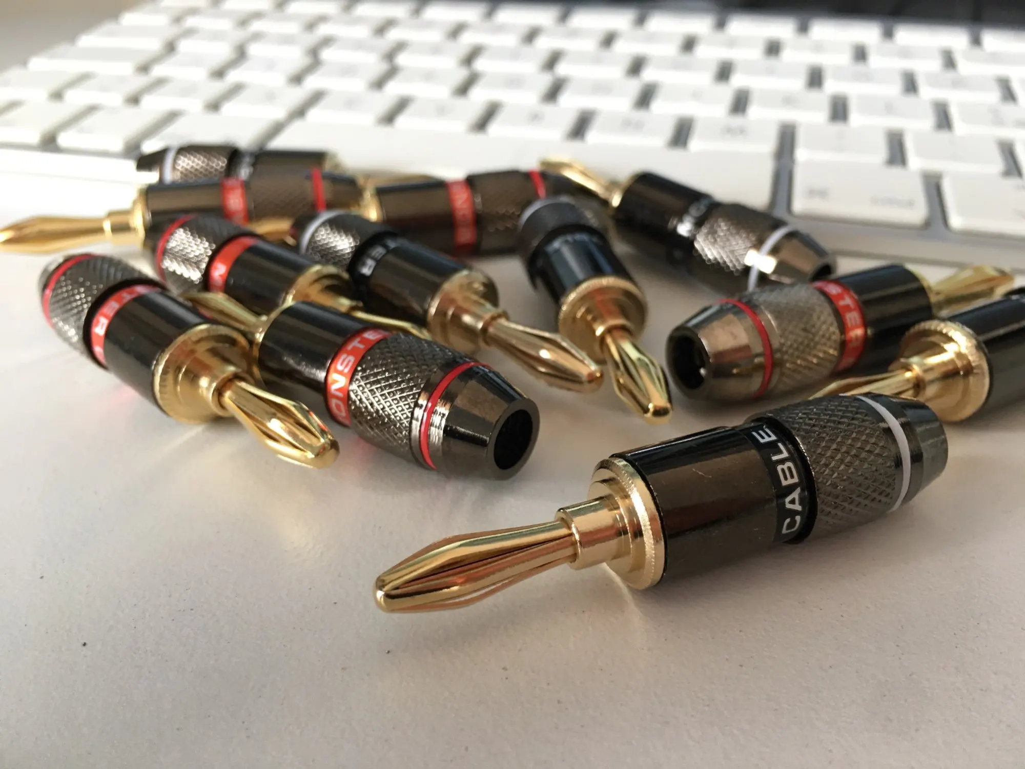 12Pcs/Set 24K Gold Plated Banana Plug Connectors Copper Monsters Zinc Alloy Male Speaker Amplifier Screw Audio Video Adapter