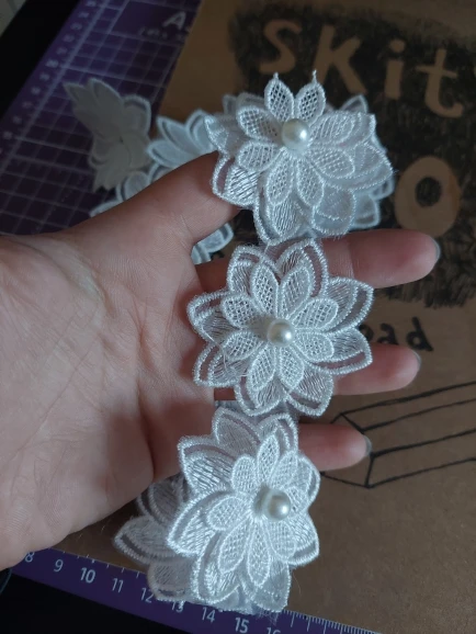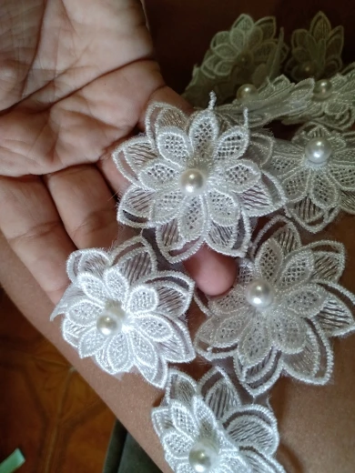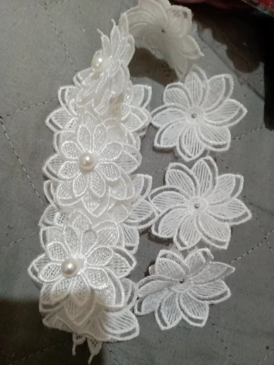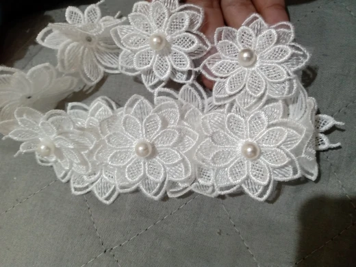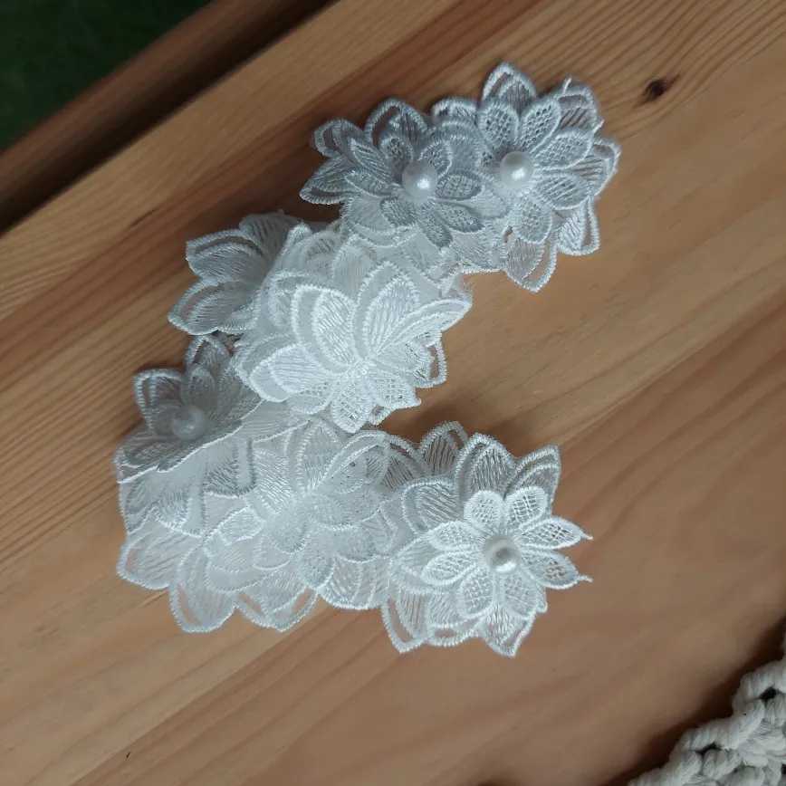12X Soluble White Polyester Pearl Flower Embroidered Lace Trim Ribbon Fabric Sewing Supplies Craft Decor, DIY Handmade Materials