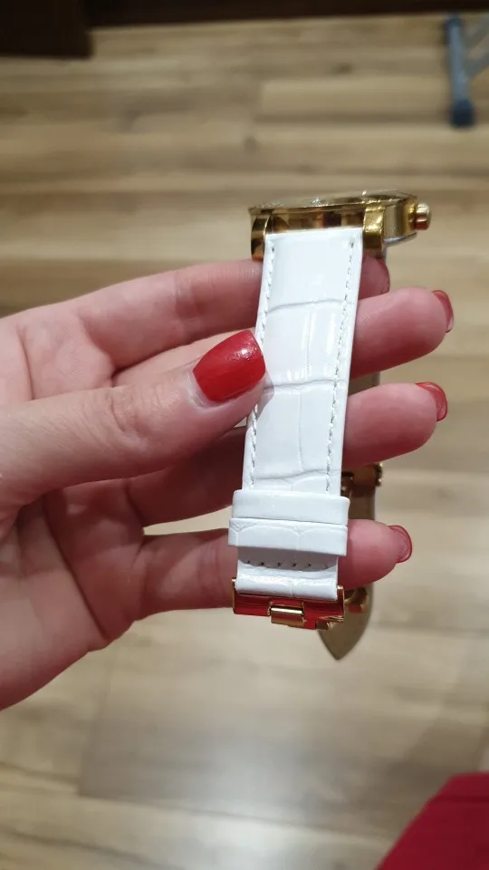 14mm 16mm 18mm 20mm 22mm Rose Gold Watch buckle Genuine Leather Watchband Wristwatches Strap Band White color for Women watches
