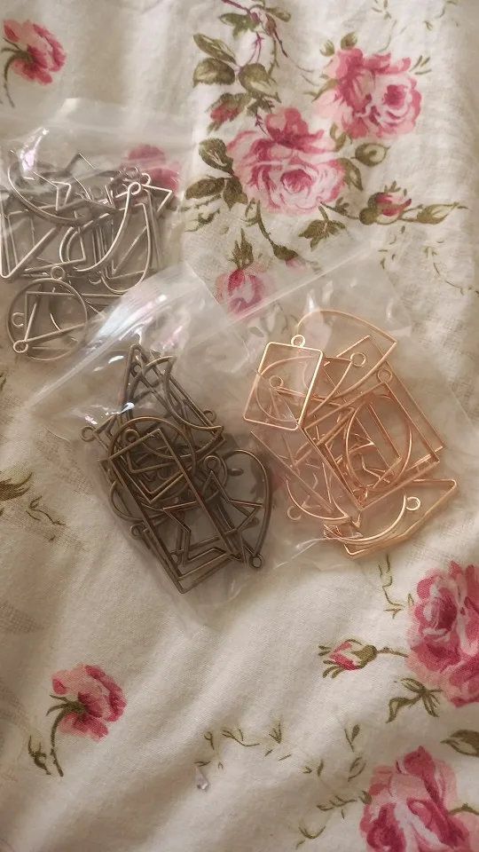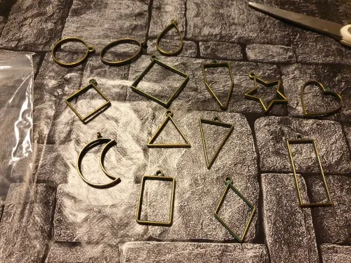 14Pcs Assorted Geometric Hollow Pressed Flower Frame Pendant Resin Jewelry Making Tool Metal Frame Jewelry Charms Bezel Setting