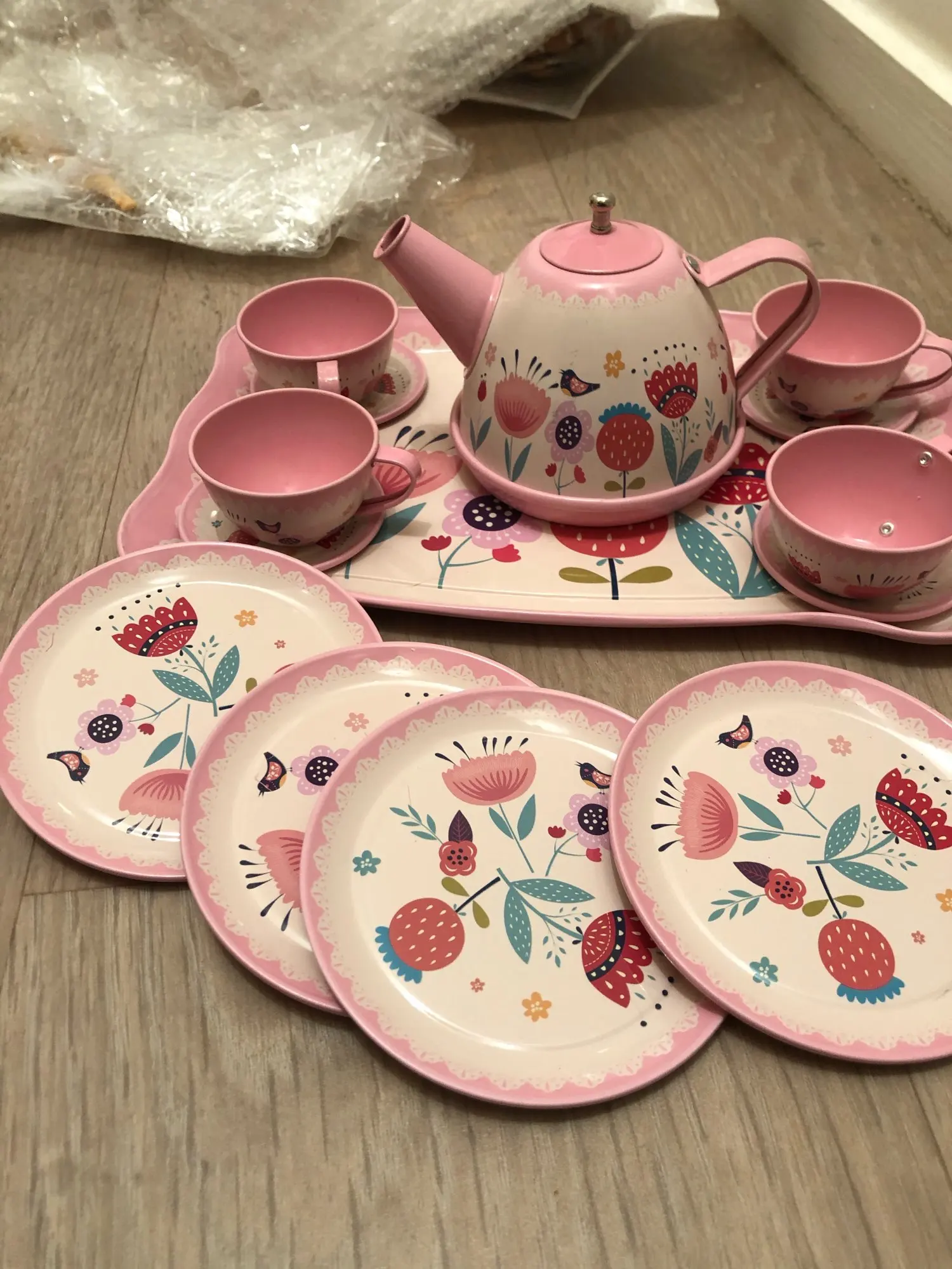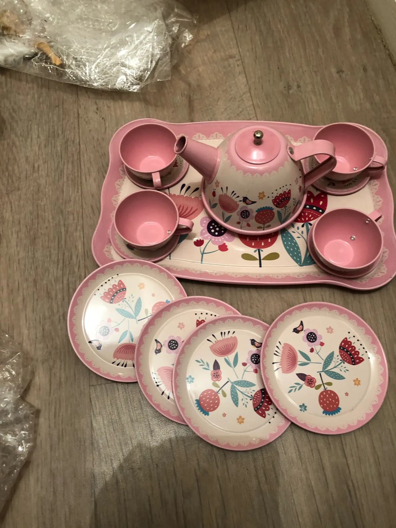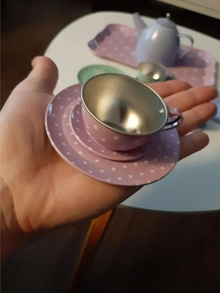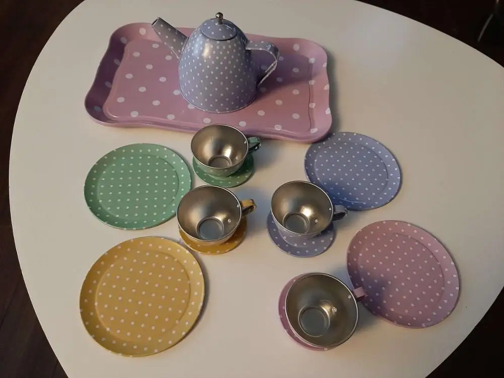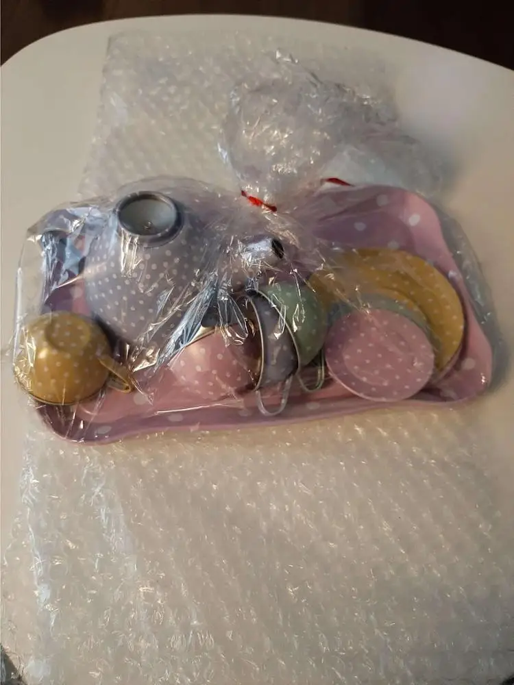 Hi there, the box ( little suitcase as per picture on the ad) to hold the set together is missing. The pieces arrived in box in shambles, with a bit of bubble wrap :-( The tea set is still good quality. If you want the box to carry the tea set, shop some place else.