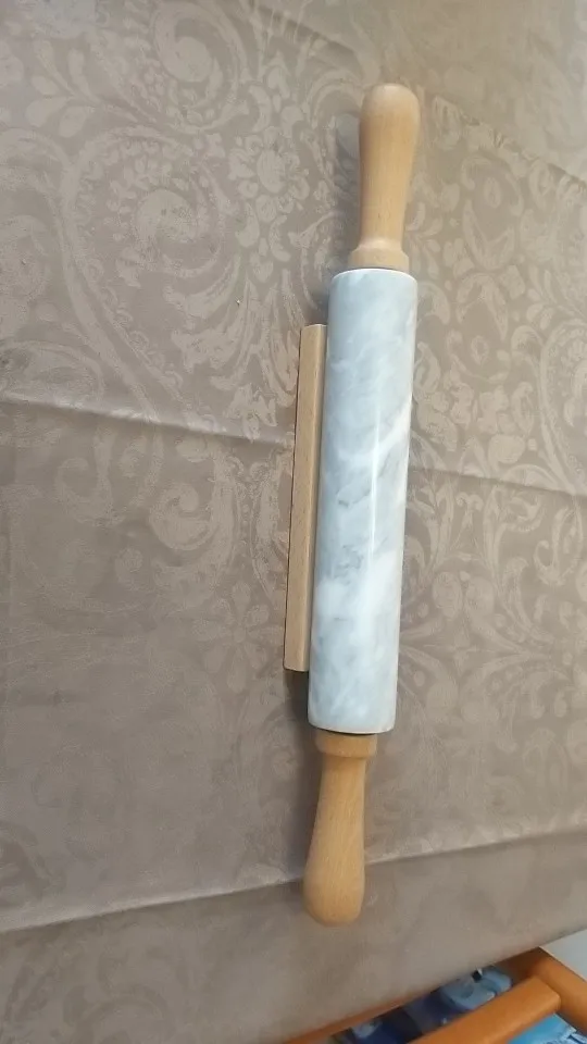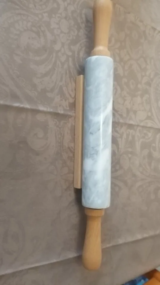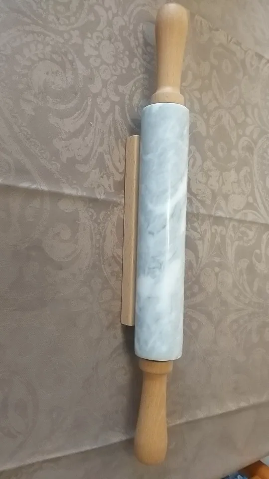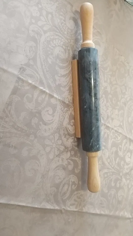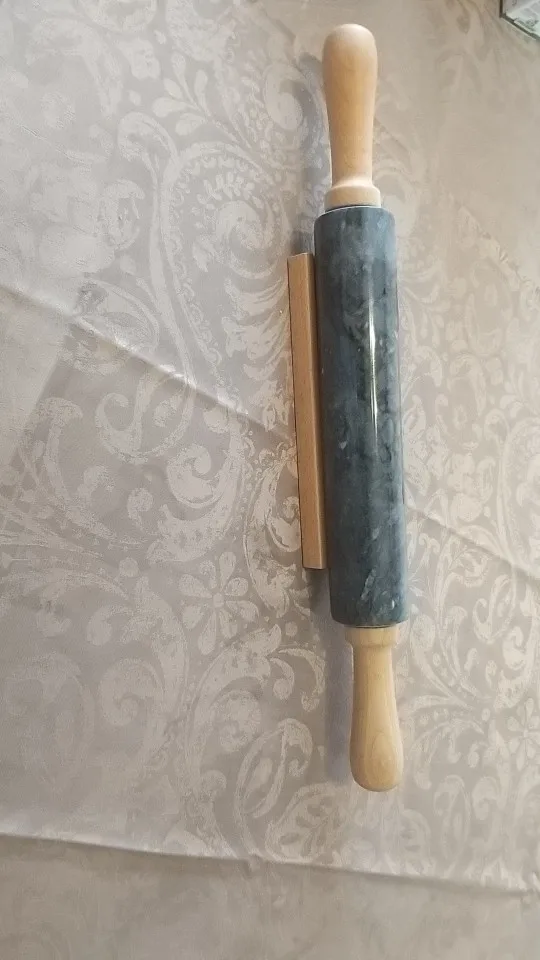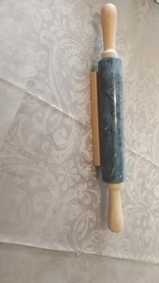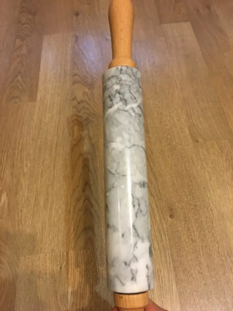 18-inch Large Deluxe Natural Marble Stone Rolling Pin with Wood Handles & Cradle (Gray/Black)