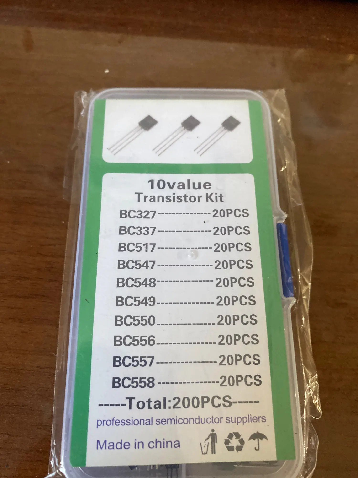 1BOX 200pcs=10 Values*20pcs Transistor kit Assort set BC327/BC337/BC517/BC547/BC548/BC549/BC550 BC556/BC557/BC558 mix diode pack