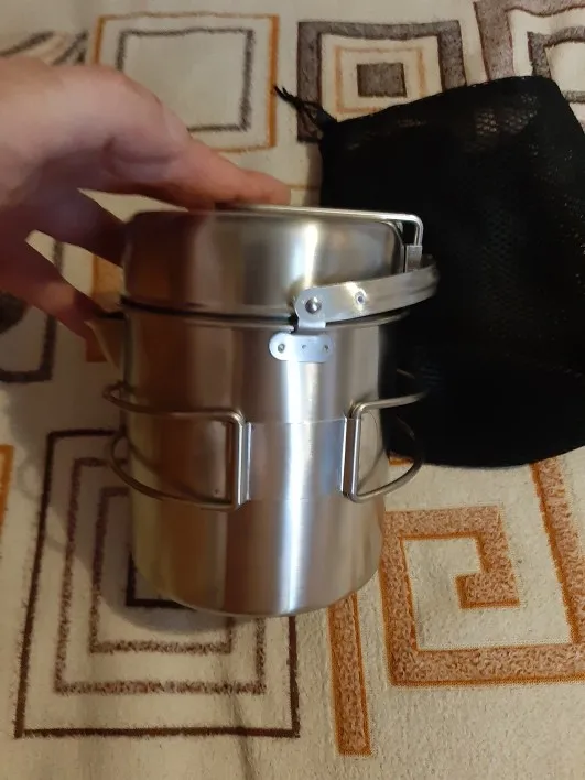 1L Camping Kettle Stainless Steel Cooking Kettle Camping Pot Portable Outdoor Camping Backpacking Pot with Foldable Handle