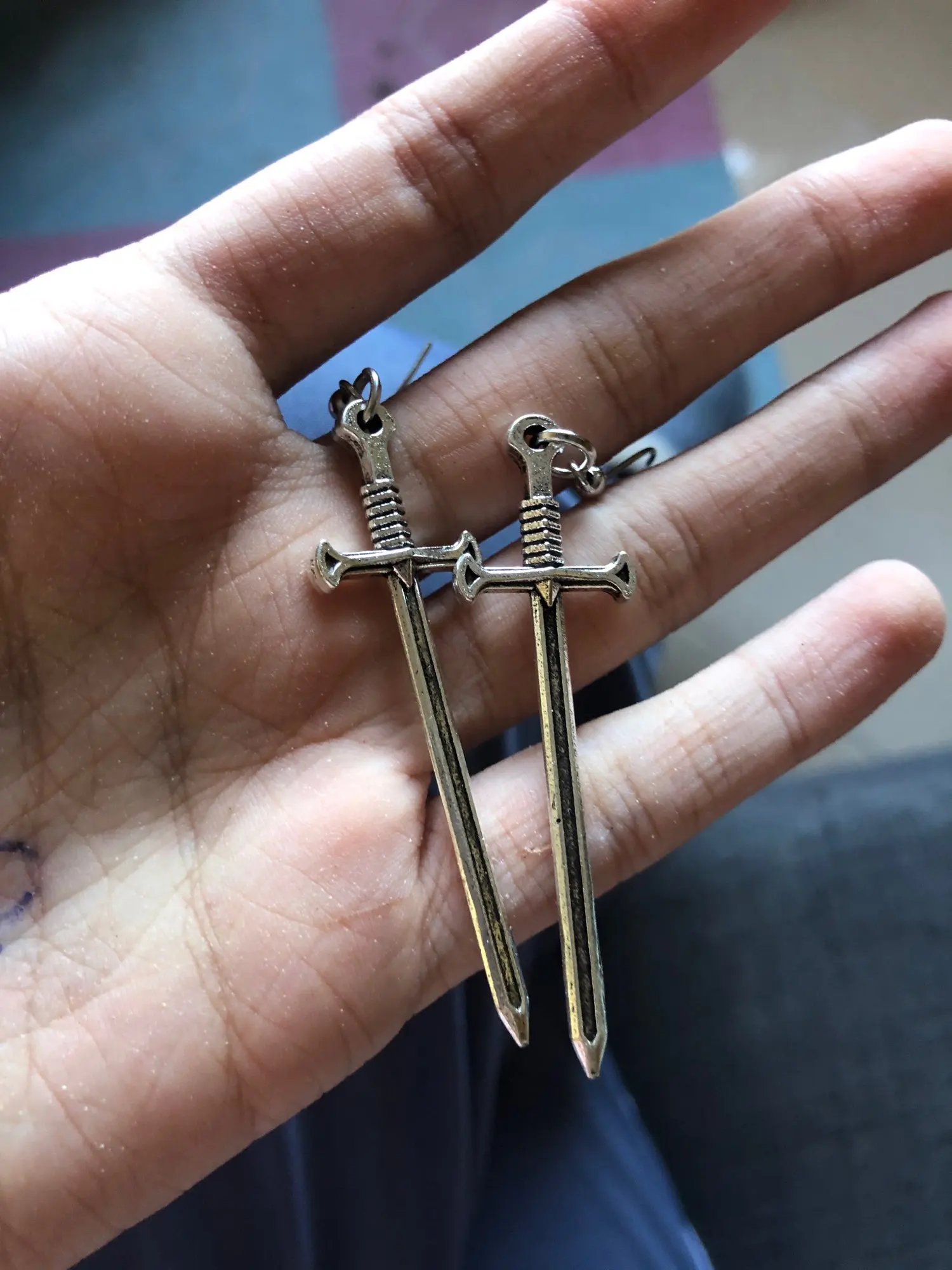 1Pair Vintage Cool Sword Earrings Female Punk Ear Hoops For Womens Jewelry Long Unique Earring