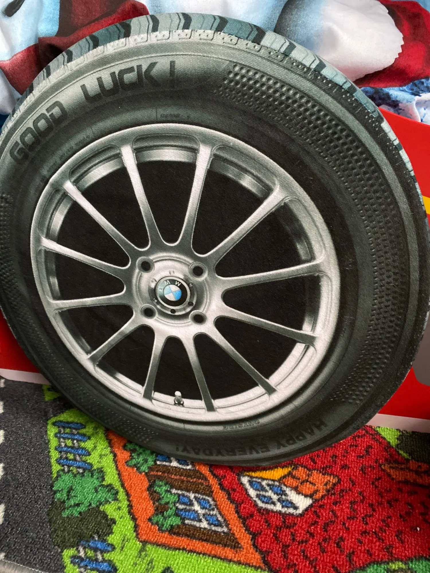 I´m very satisfied. Goods delivered in order and correspond with the images and description. The pillow cushion looks great and authentic as the car wheel. I can recommend it. Thank you to the seller *****