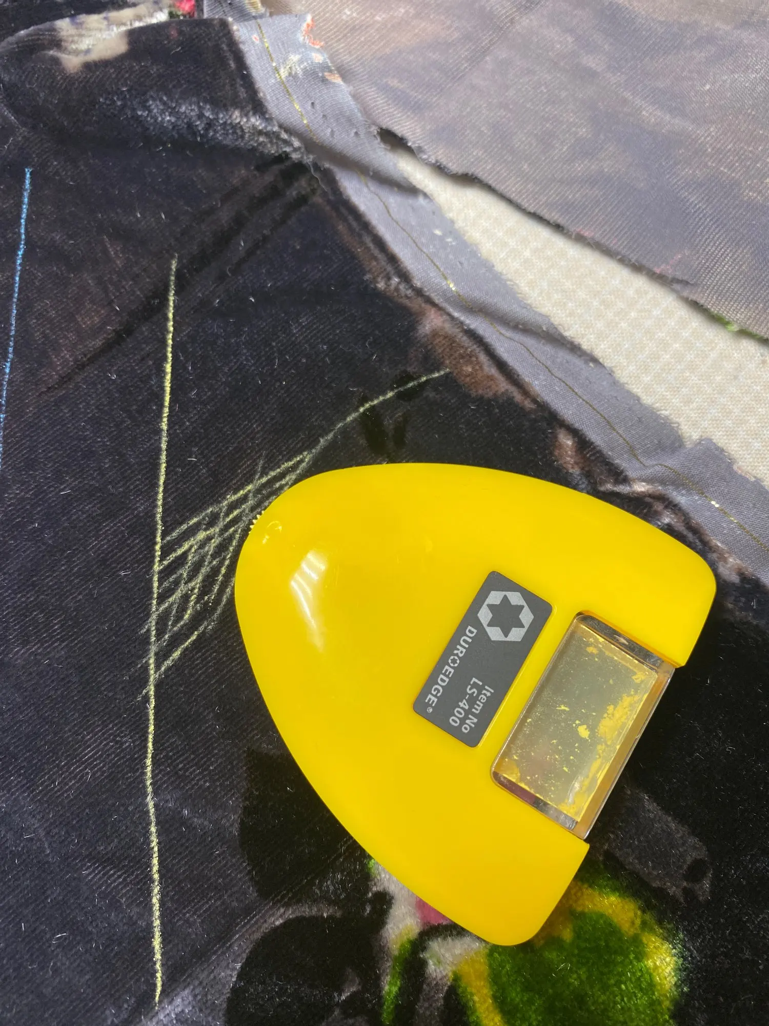 It is a great invention. The fabric doesn't move when you use it because there is no friction, it is a slim metal gear that rotates and deposits the chalk powder on the fabric. the line on the fabric is very thin and maintains its width all the time. The cartridge is refillable and you don't really need to buy a new one if it runs out. 100% recommend