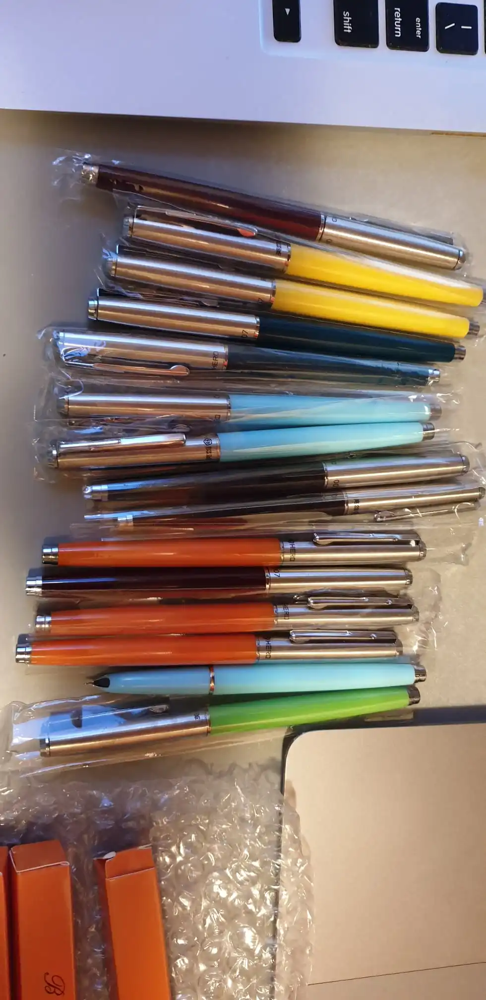 Pens are hand assamble. Quality is low. Plastic low quality is too. But they are work normal... It descend for use but I did not buy them again.