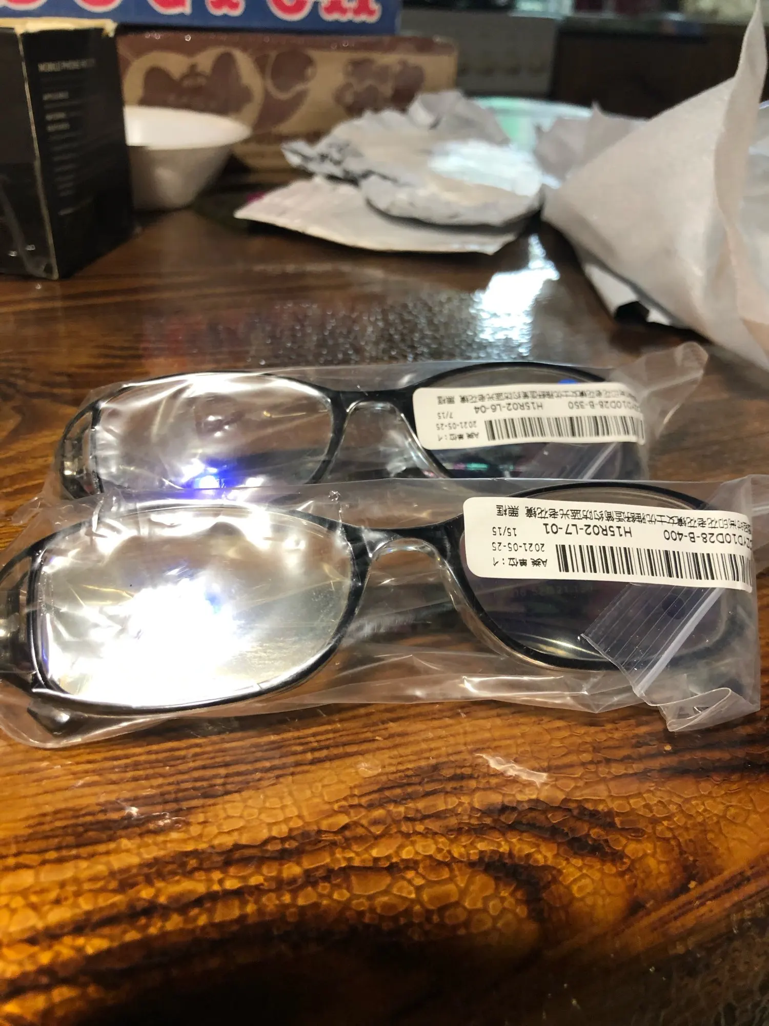 One pair of the glass lens is blurred.